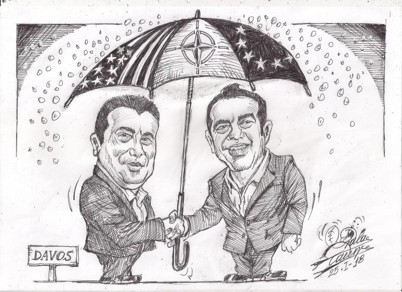 Σκίτσο του Τάκη Χάλαρη με θέμα: "Συνάντηση Τσίπρα - Ζάεφ"