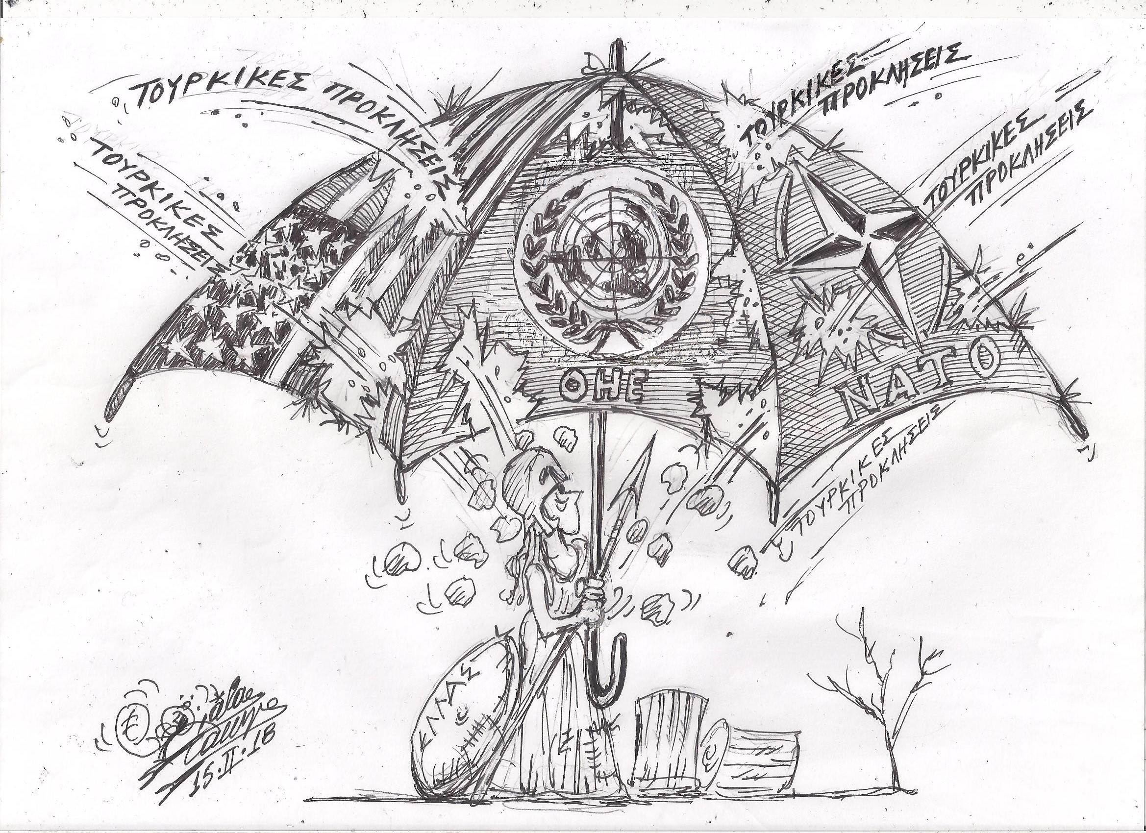 Σκίτσο του Τάκη Χάλαρη με θέμα: "Ομπρέλα προστασίας"