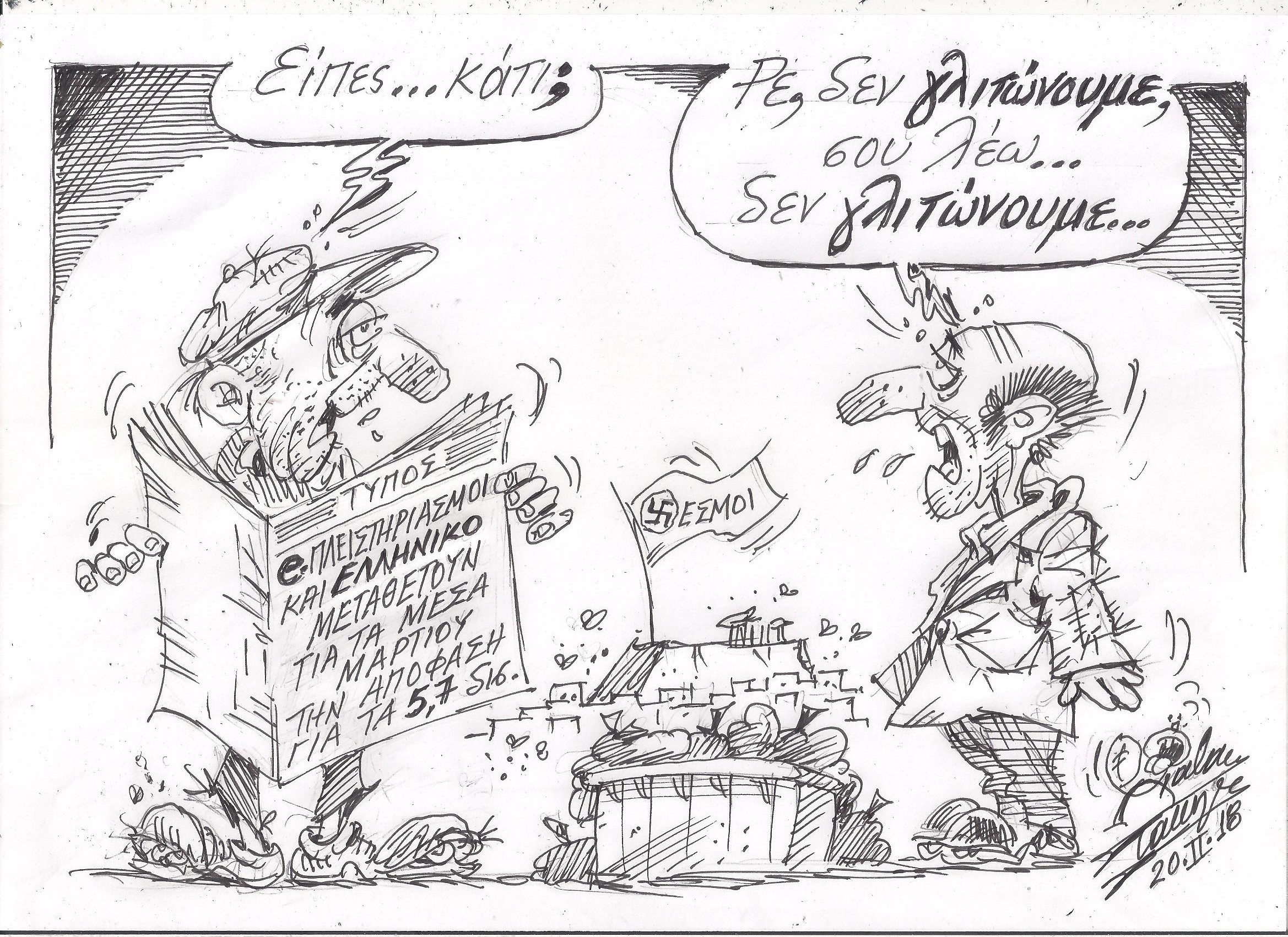 Σκίτσο του Τάκη Χάλαρη με θέμα: "Δεν γλιτώνουμε"