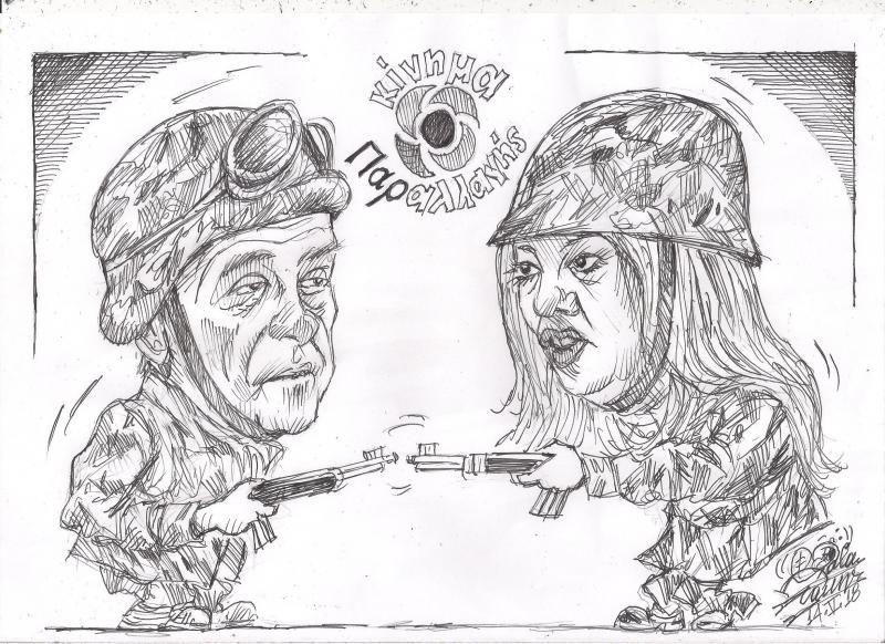Σκίτσο του Τάκη Χάλαρη με θέμα: "Κόντρα Φώφης - Σταύρου"
