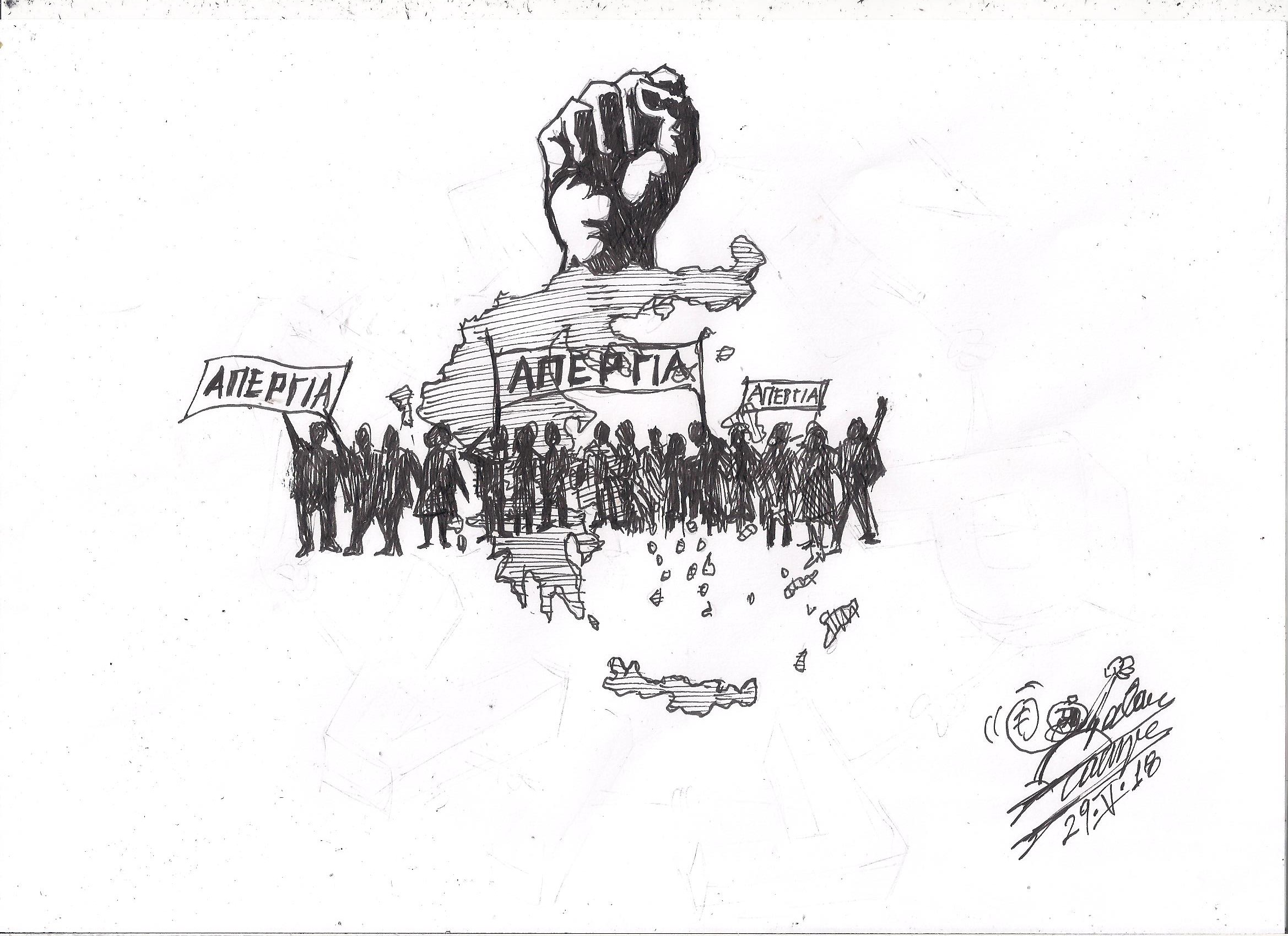 Σκίτσο του Τάκη Χάλαρη με θέμα: "Απεργία"