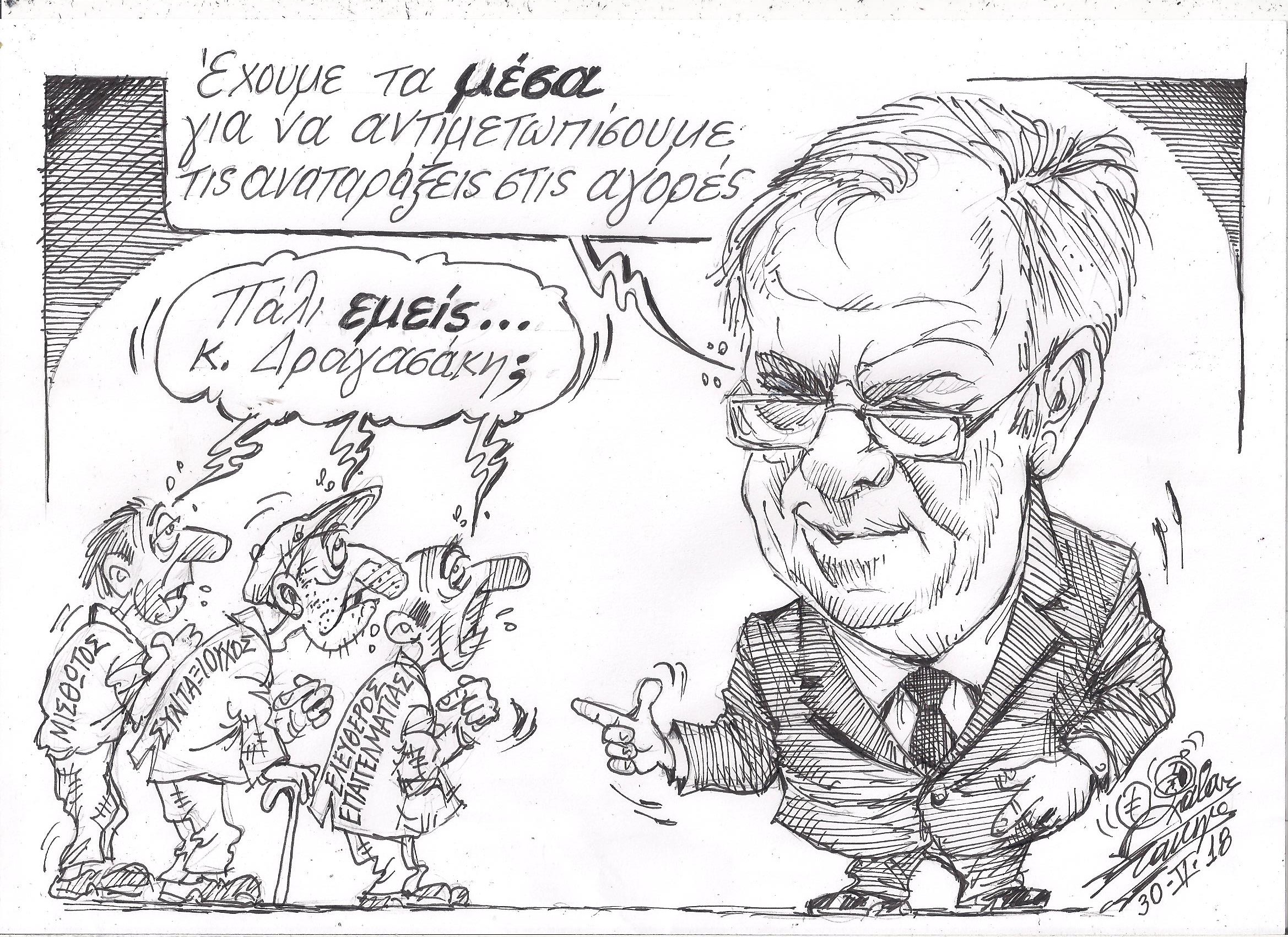 Σκίτσο του Τάκη Χάλαρη με θέμα: "Τα.... Μέσα"