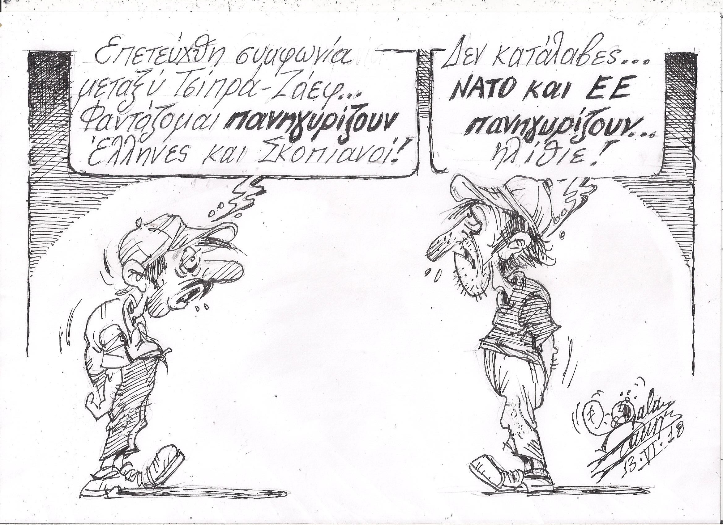 Σκίτσο του Τάκη Χάλαρη με θέμα: "Περί συμφωνίας"