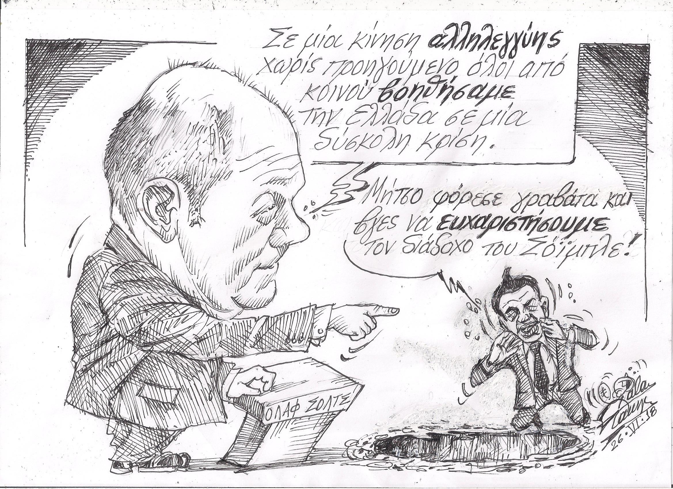 Σκίτσο του Τάκη Χάλαρη με θέμα: "Να τους ευχαριστήσουμε"