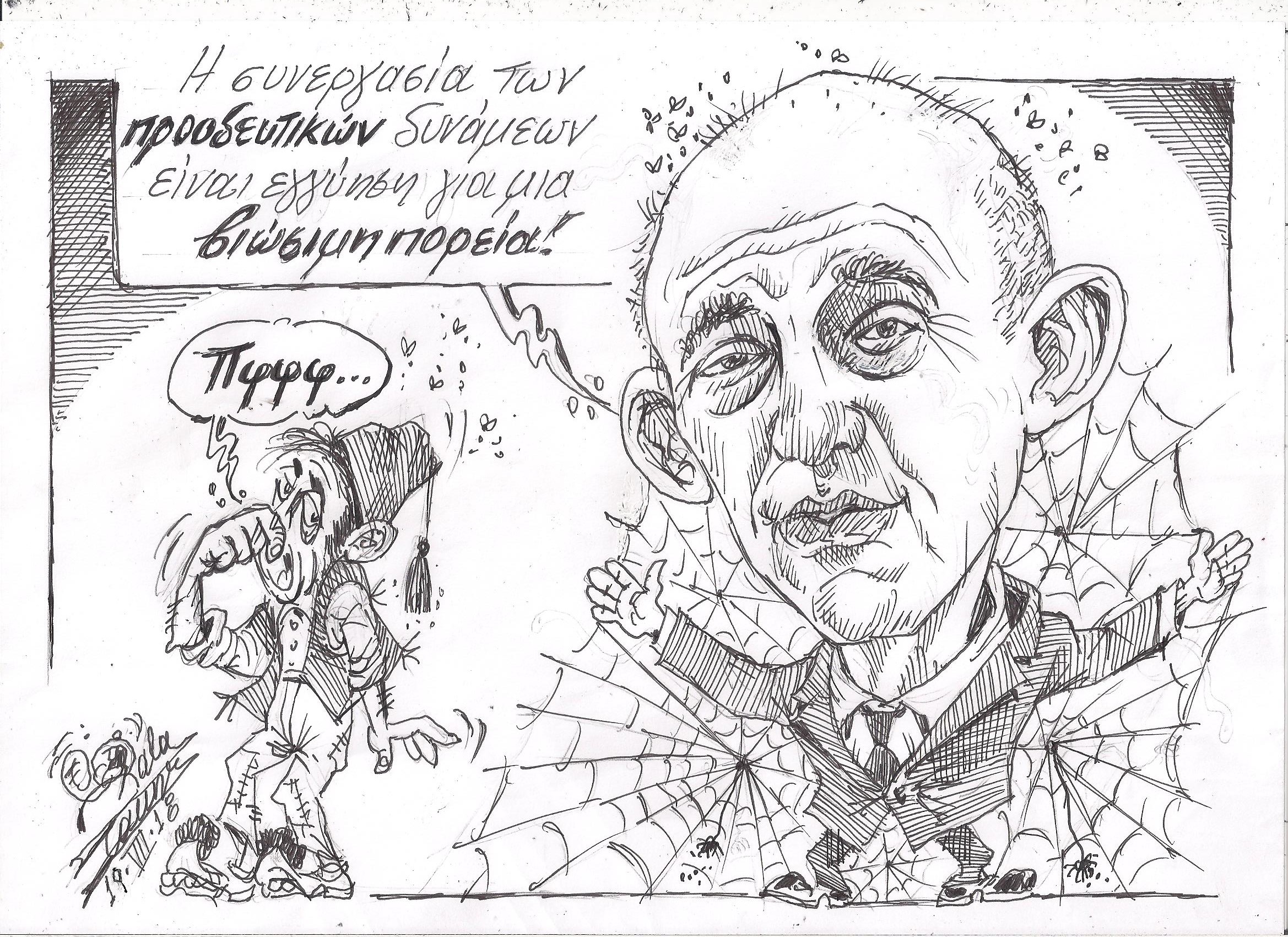 Σκίτσο του Τάκη Χάλαρη με θέμα: Για βιώσιμη πορεία"
