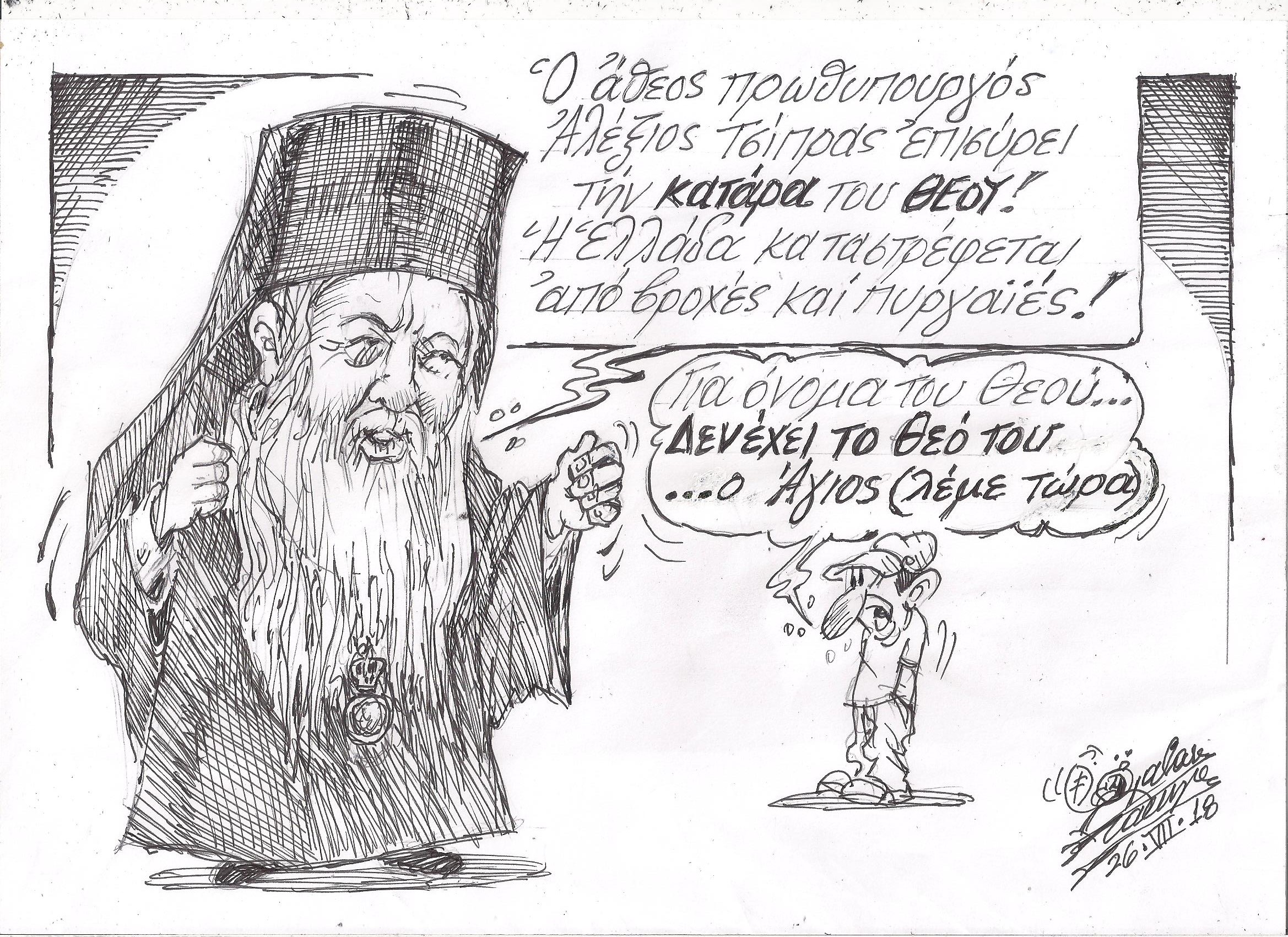 Σκίτσο του Τάκη Χάλαρη με θέμα: "Δεν έχει τον Θεό του"
