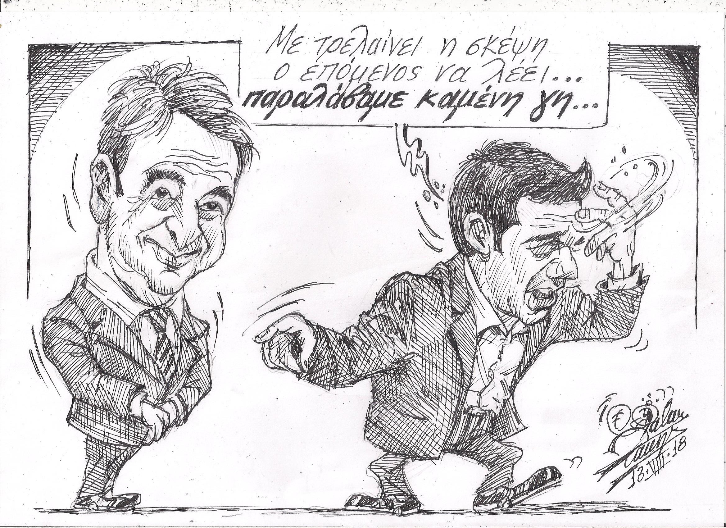 Σκίτσο του Τάκη Χάλαρη με θέμα: "Καμένη Γη"