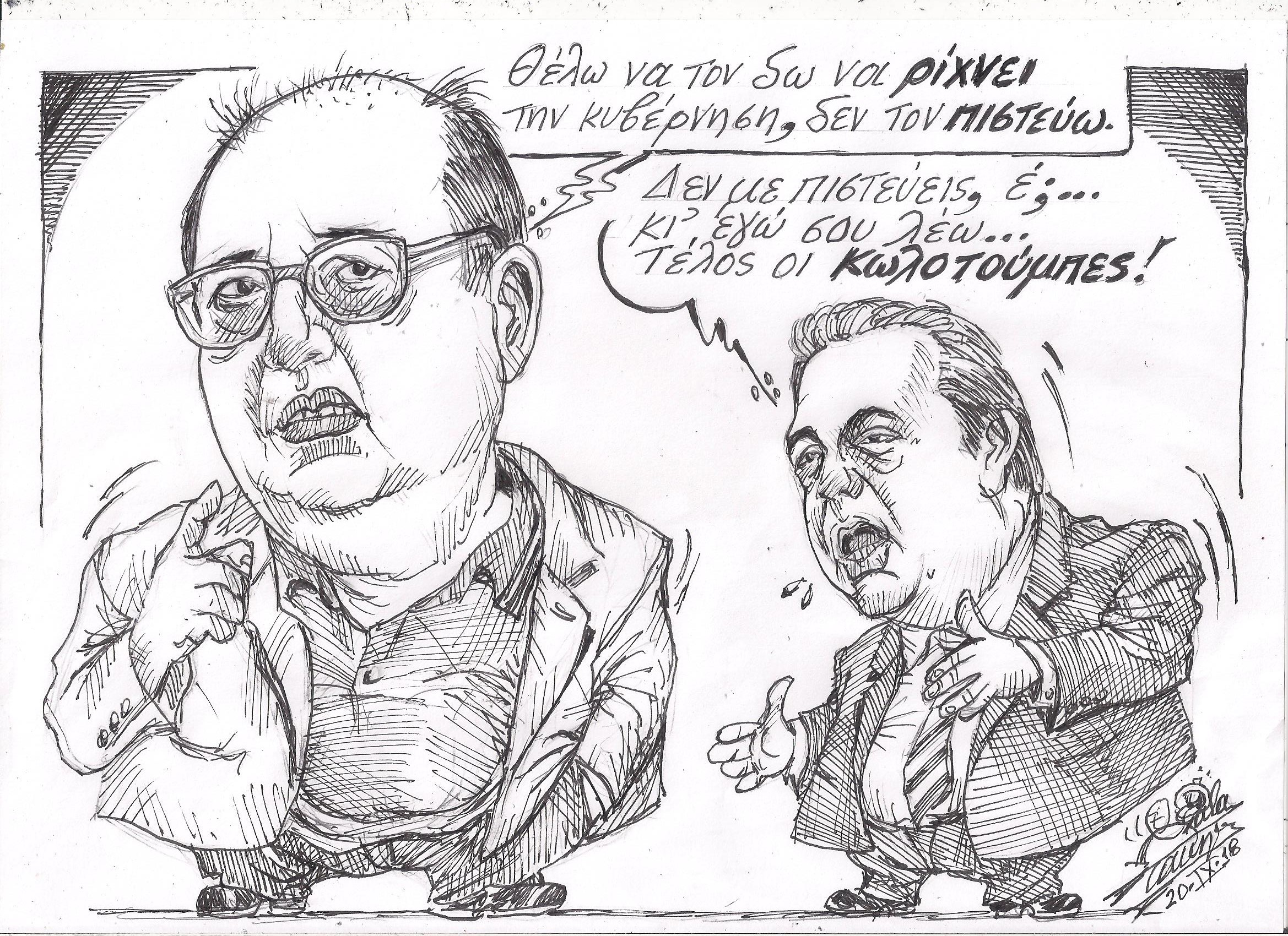Σκίτσο του Τάκη Χάλαρη με θέμα: "Δεν τον πιστεύει"