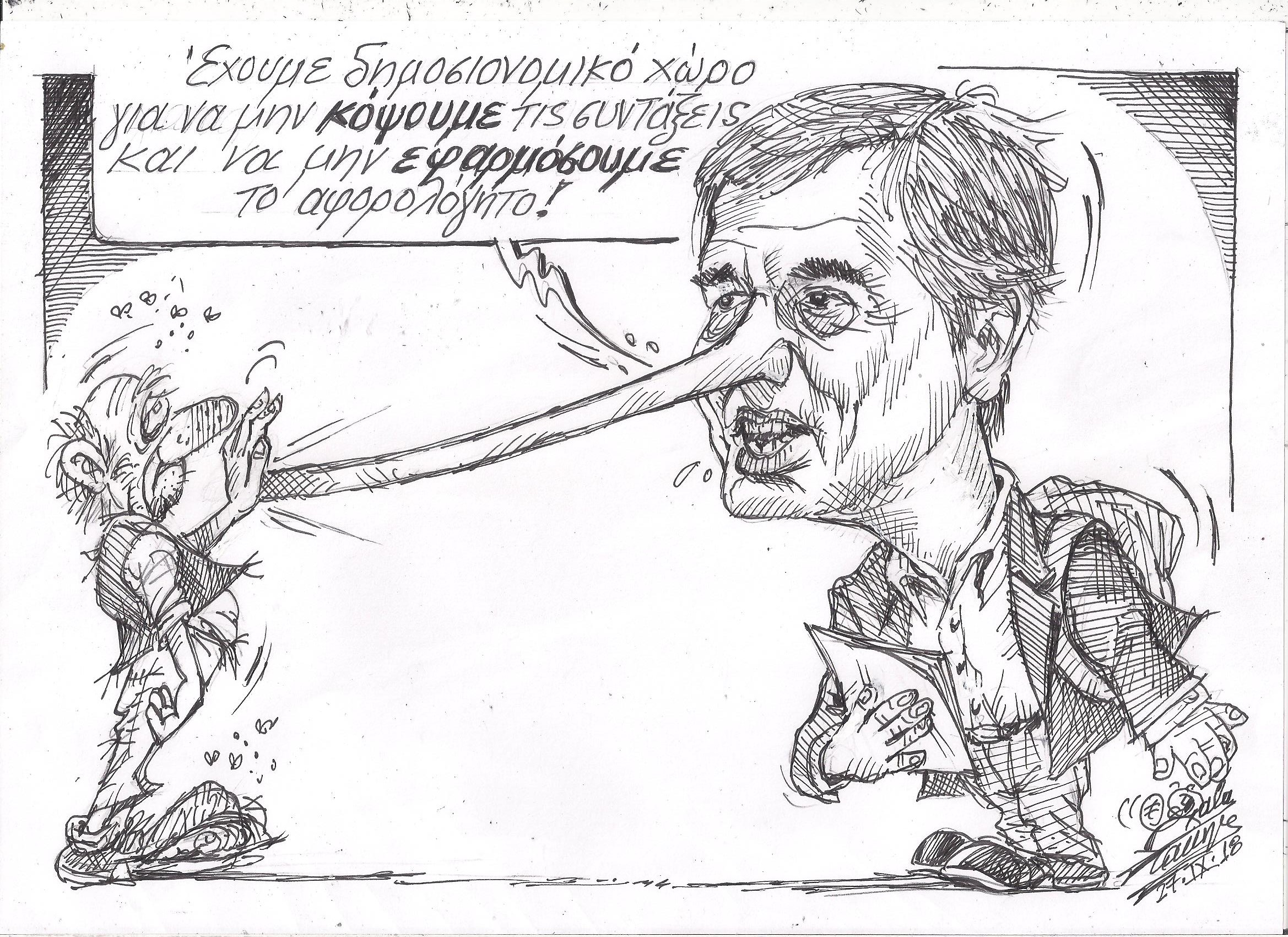 Σκίτσο του Τάκη Χάλαρη με θέμα: "Περί συντάξεων και αφορολόγητου"