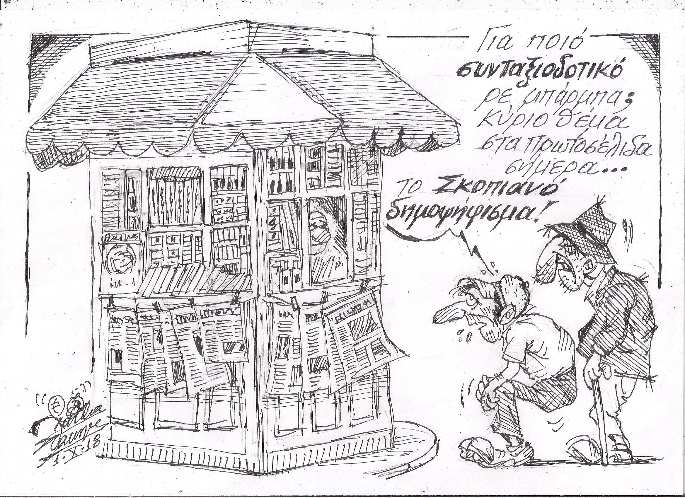 Σκίτσο του Τάκη Χάλαρη με θέμα: "Τα πρωτοσέλιδα"