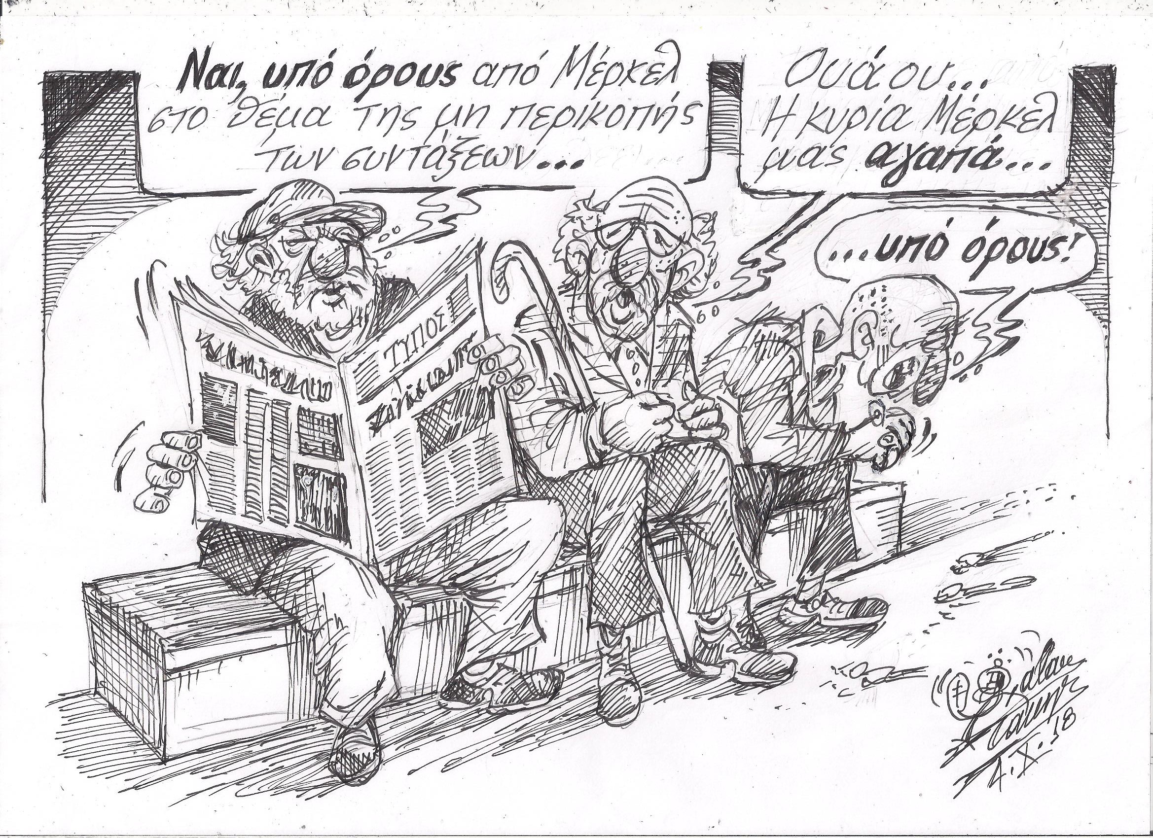 Σκίτσο του Τάκη Χάλαρη με θέμα: "Υπό όρους"