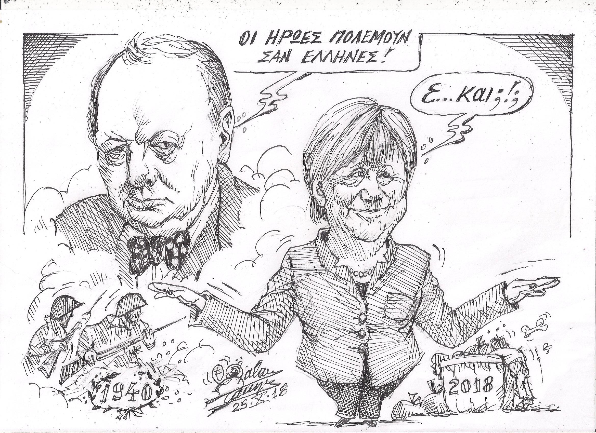 Σκίτσο του Τάκη Χάλαρη με θέμα: "1940-2018"