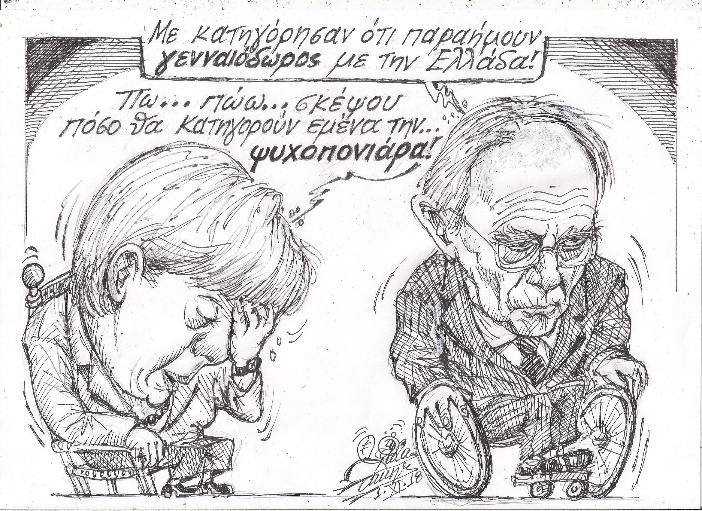 Σκίτσο του Τάκη Χάλαρη με θέμα: "Γενναιόδωρος & Ψυχοπονιάρα"