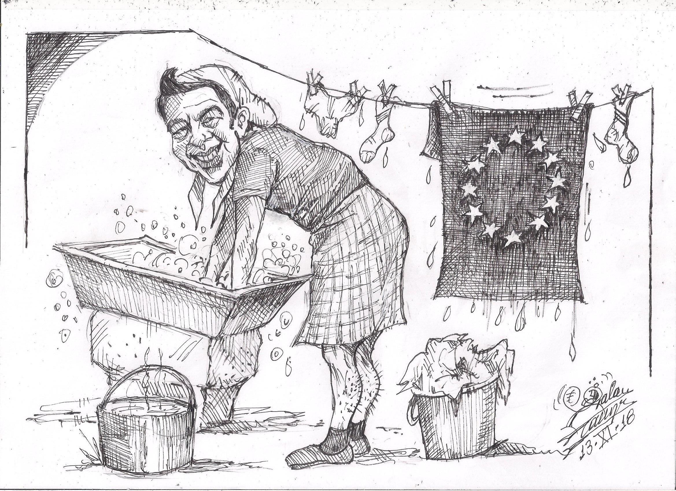Σκίτσο του Τάκη Χάλαρη με θέμα: "Ξεπλένει την ΕΕ"