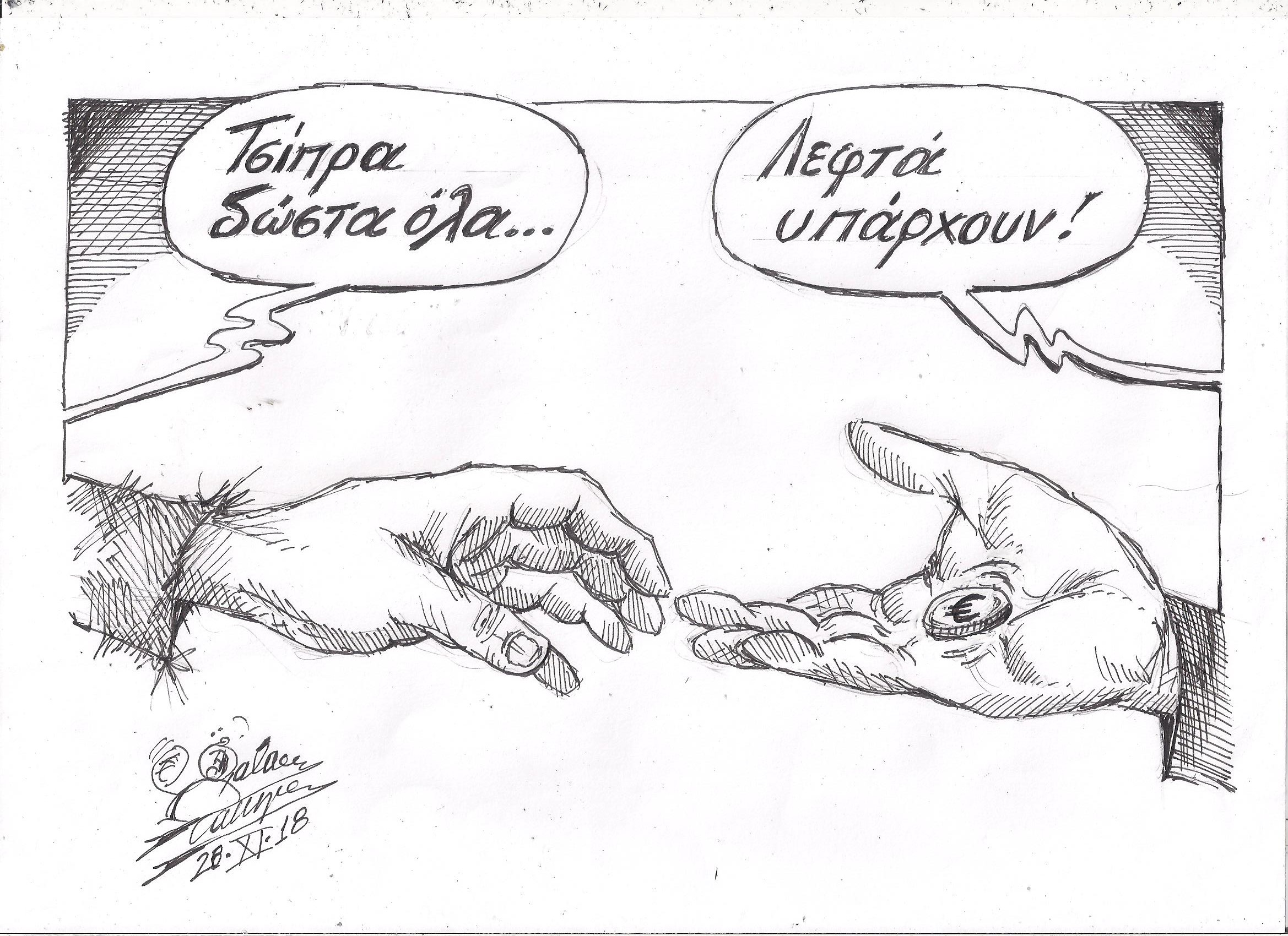 Σκίτσο του Τάκη Χάλαρη με θέμα: "Παροχές"