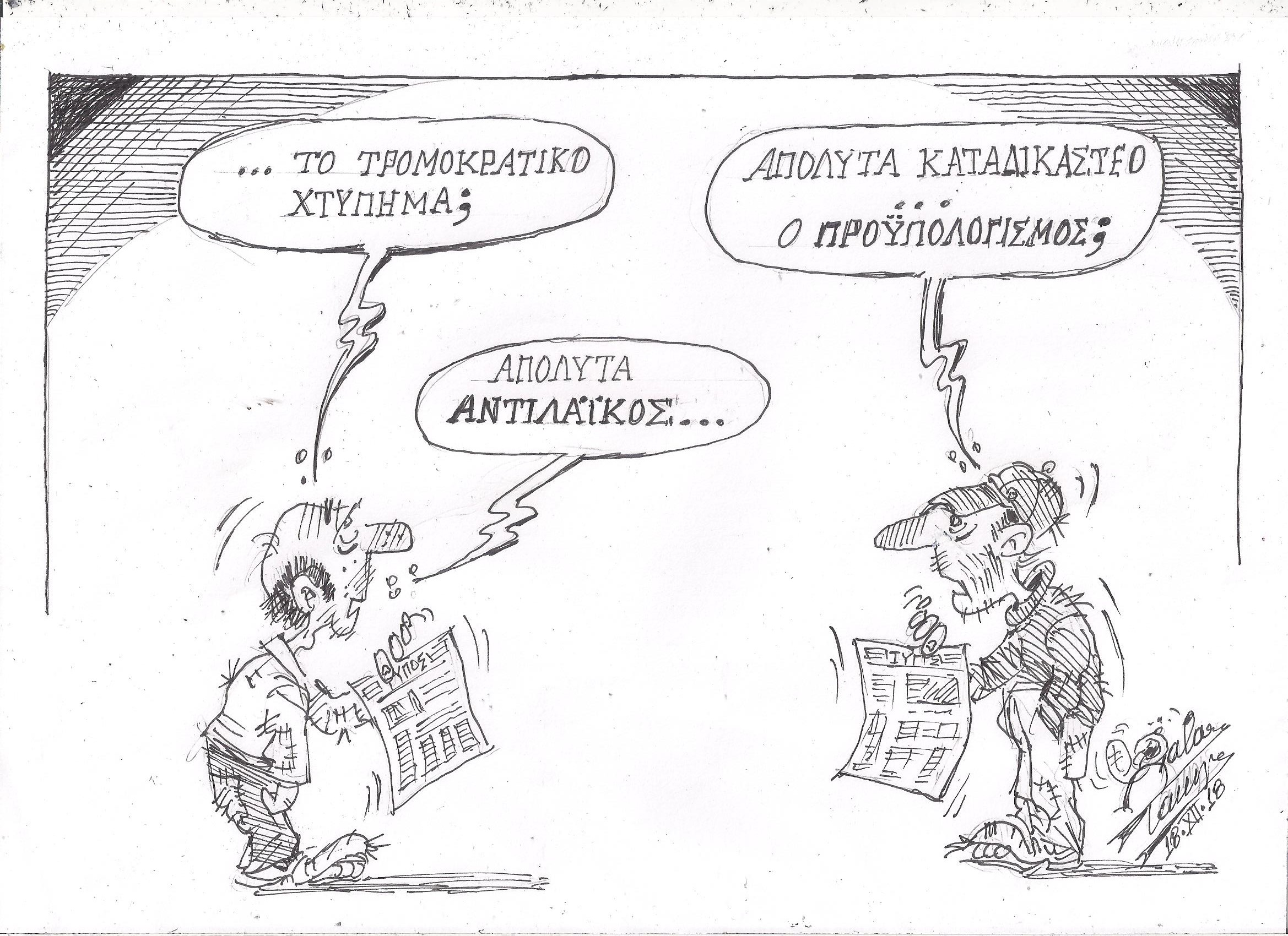 Σκίτσο του Τάκη Χάλαρη με θέμα: "Ειδήσεις της ημέρας"