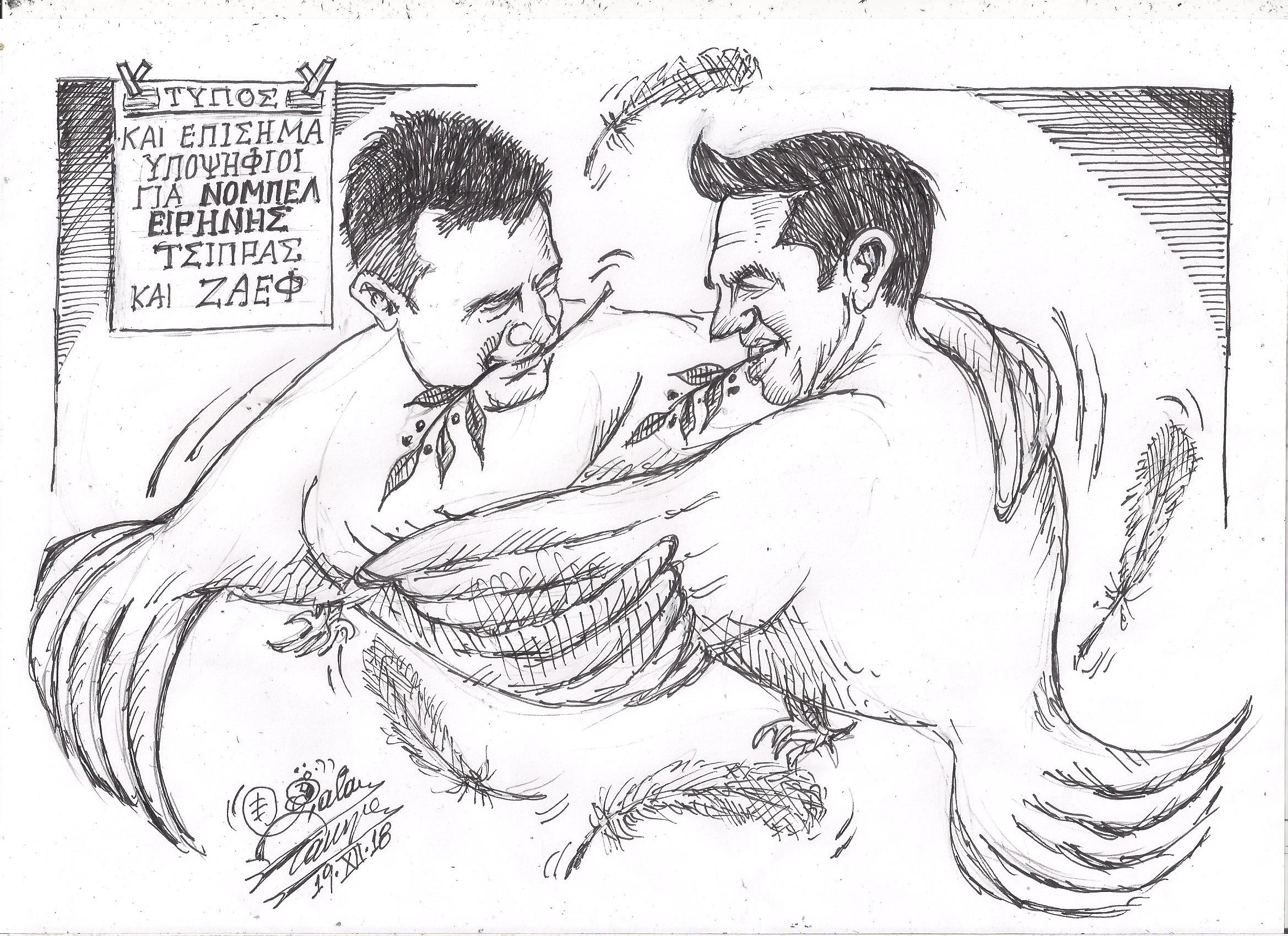Σκίτσο του Τάκη Χάλαρη με θέμα: "Τα πιτσουνάκια της.....ειρήνης"