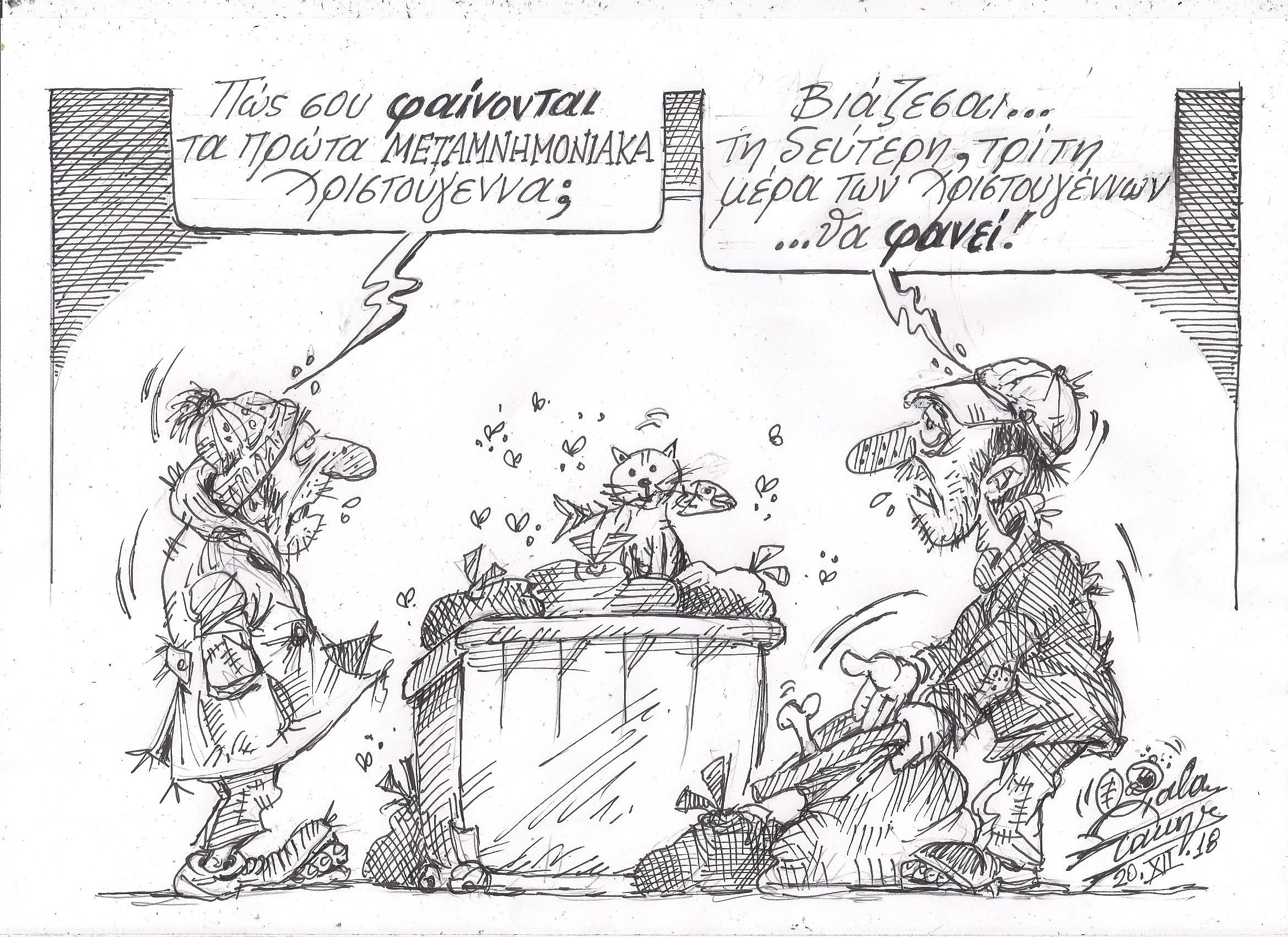 Σκίτσο του Τάκη Χάλαρη με θέμα: "Μεταμνημονιακά Χριστούγεννα"