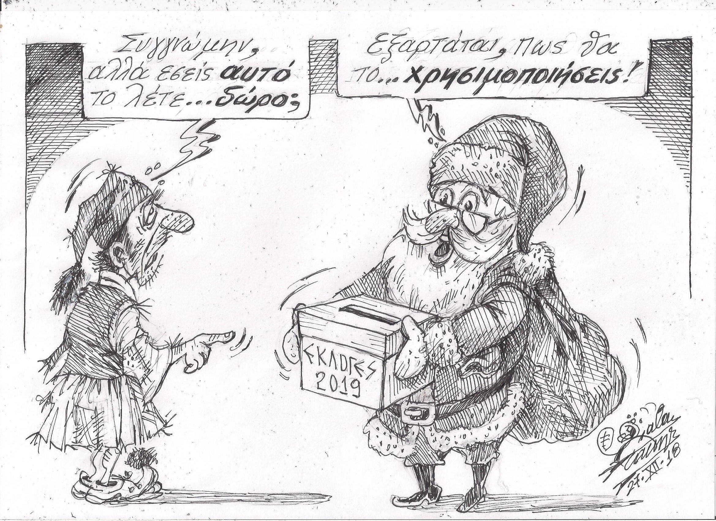 Σκίτσο του Τάκη Χάλαρη με θέμα: "Το δώρο"