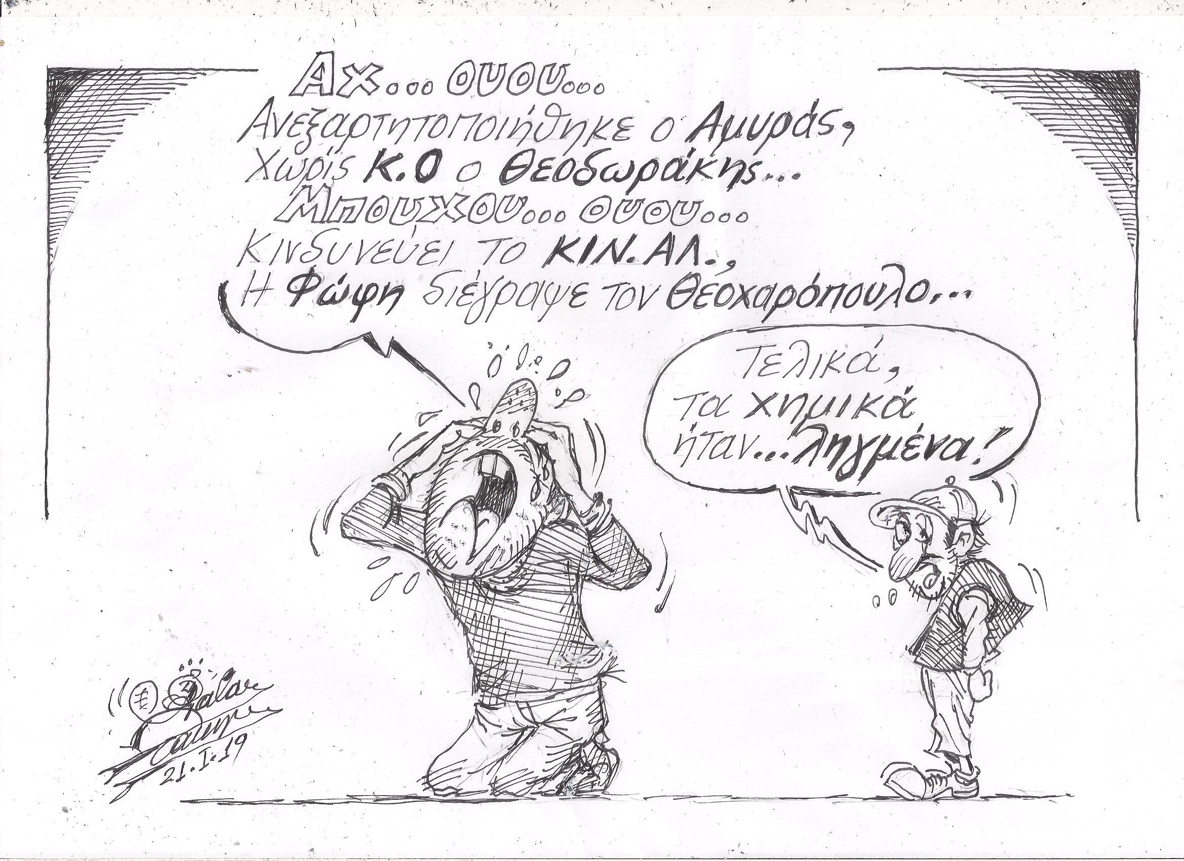 Σκίτσο του Τάκη Χάλαρη με θέμα: "Ληγμένα χημικά"