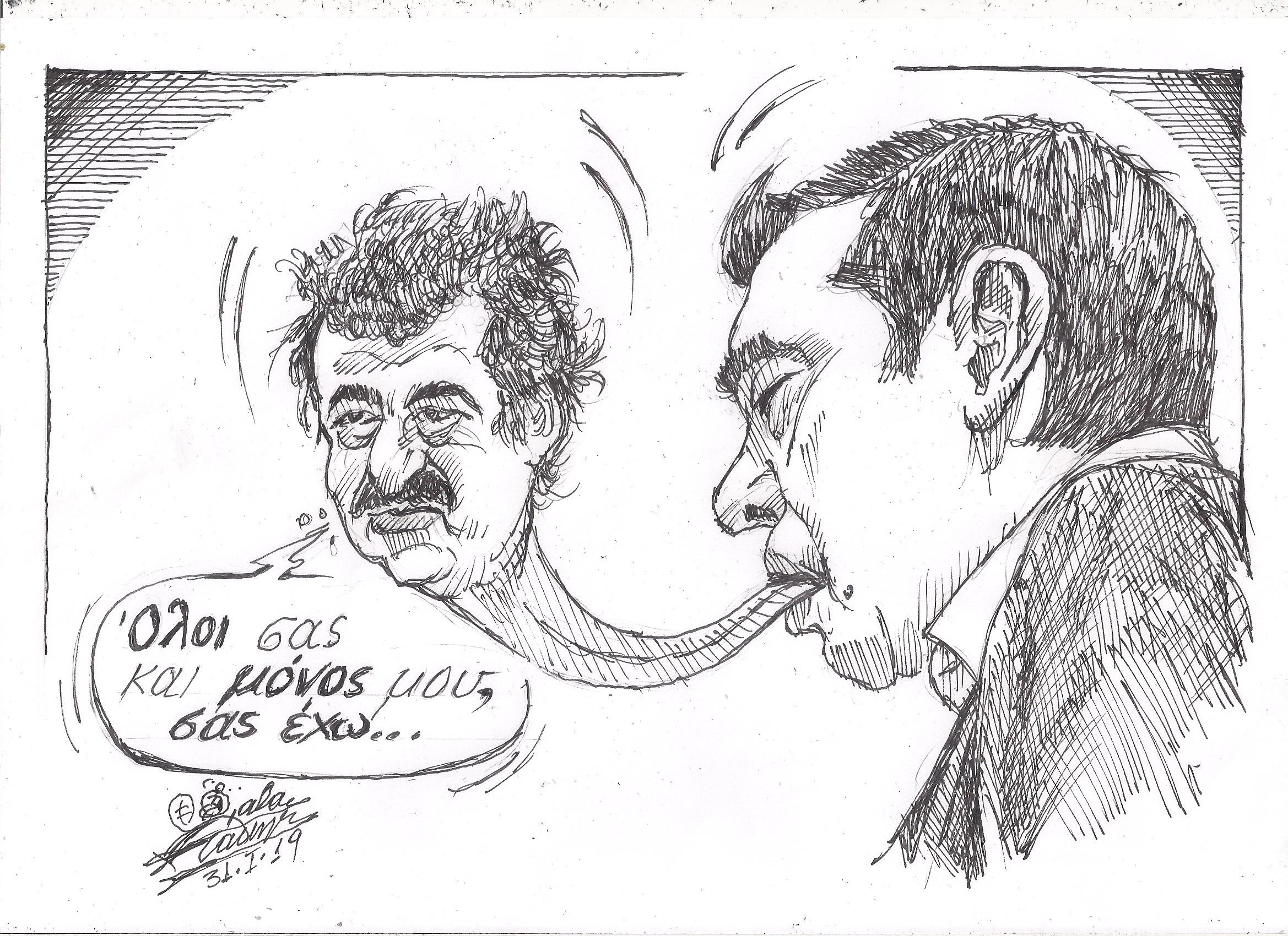 Σκίτσο του Τάκη Χάλαρη με θέμα: "Προς δημοσιογράφους"