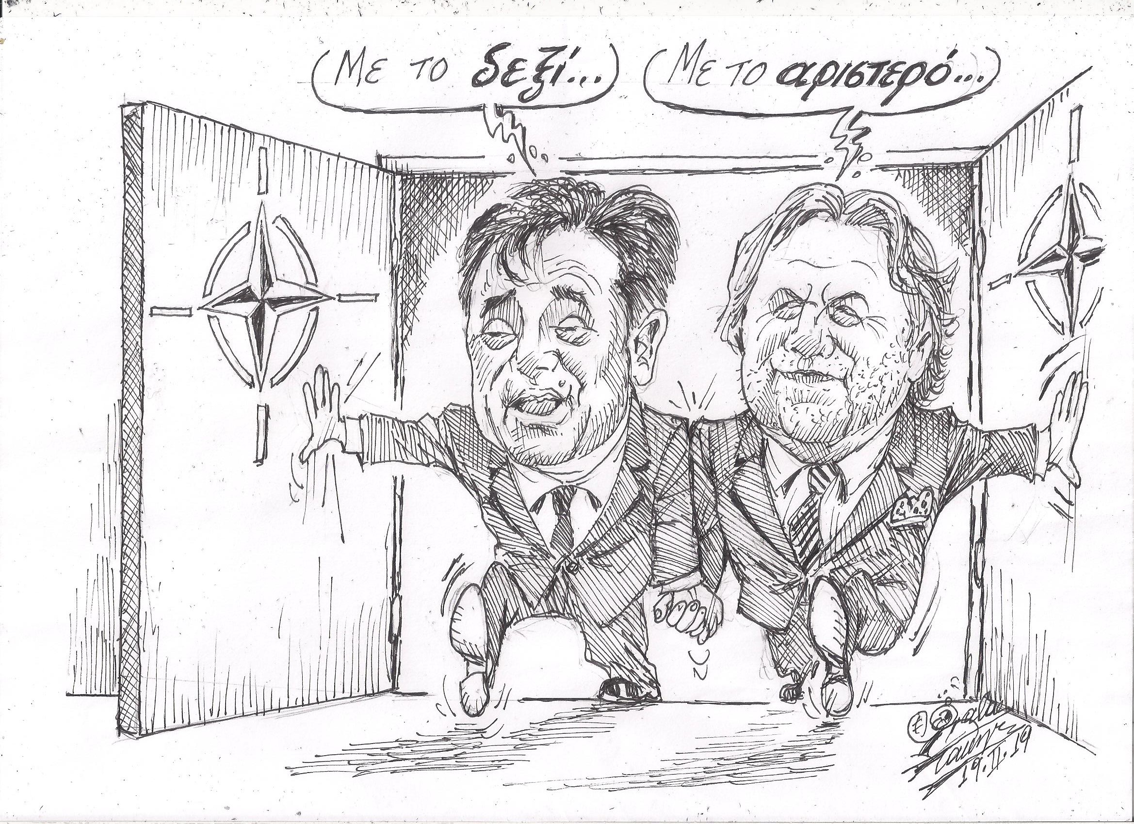 Σκίτσο του Τάκη Χάλαρη με θέμα: "Μπαίνοντας στο ΝΑΤΟ"