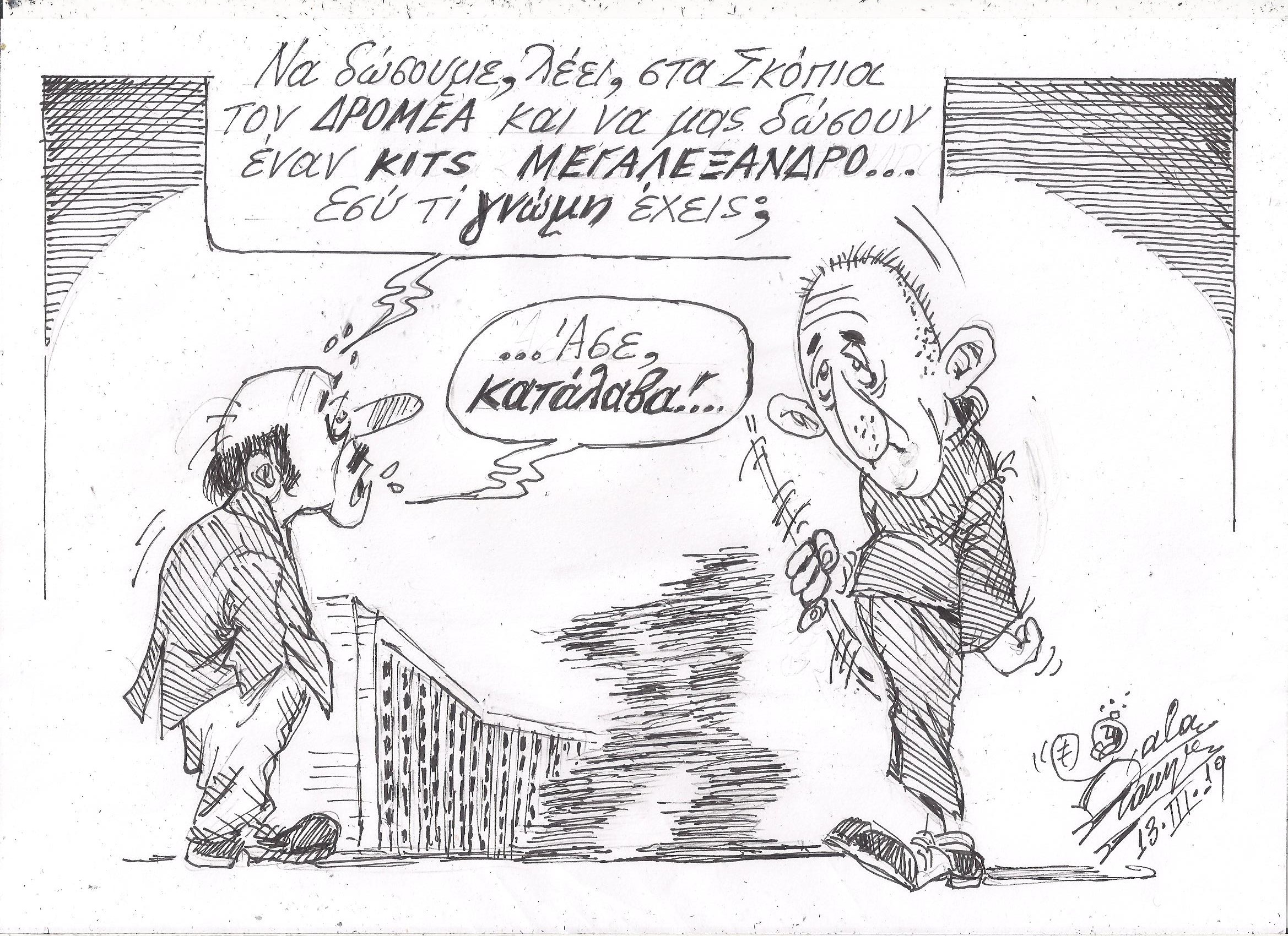 Σκίτσο του Τάκη Χάλαρη με θέμα: "Περί ανταλλαγής"