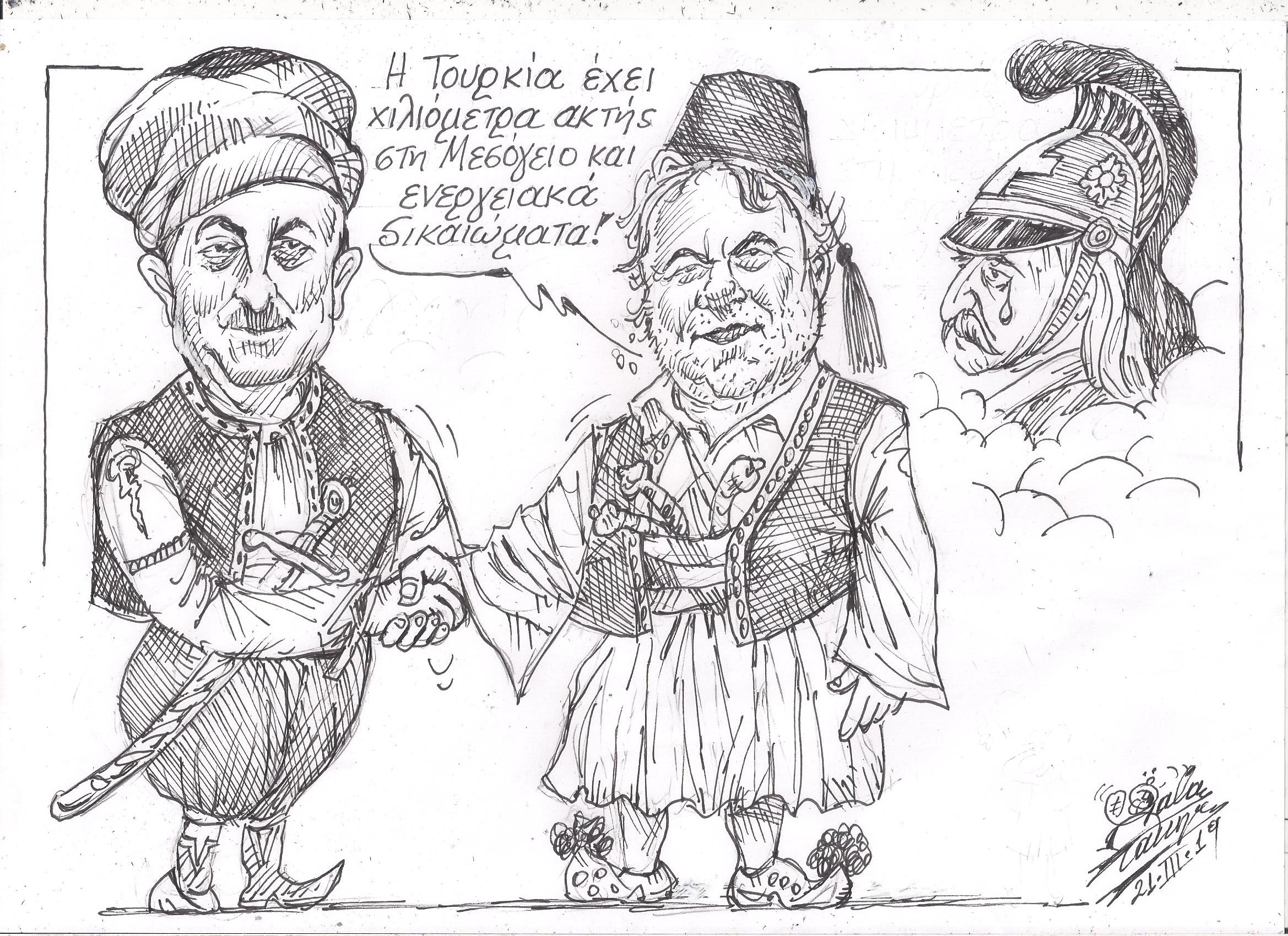 Σκίτσο του Τάκη Χάλαρη με θέμα: "Να 'τανε το '21"