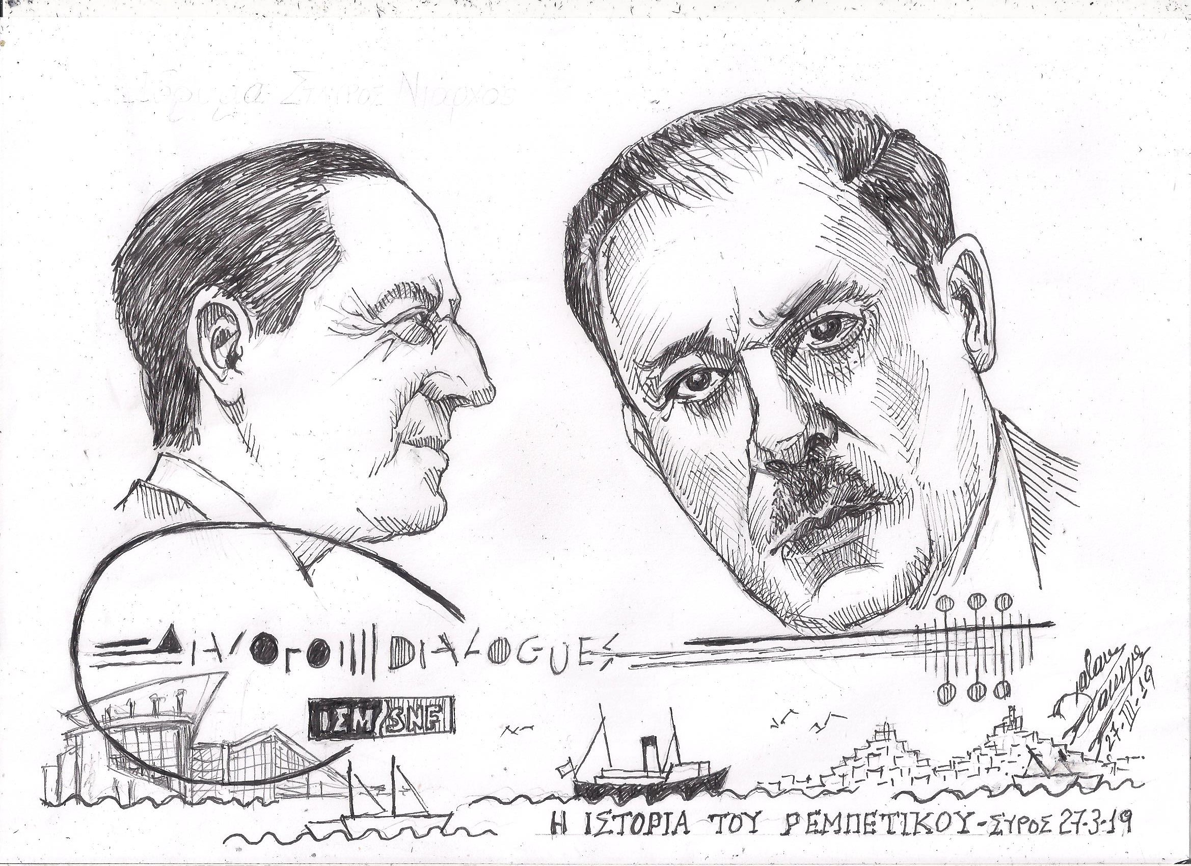 Σκίτσο του Τάκη Χάλαρη με θέμα: "Αφιέρωμα στο ρεμπέτικο"