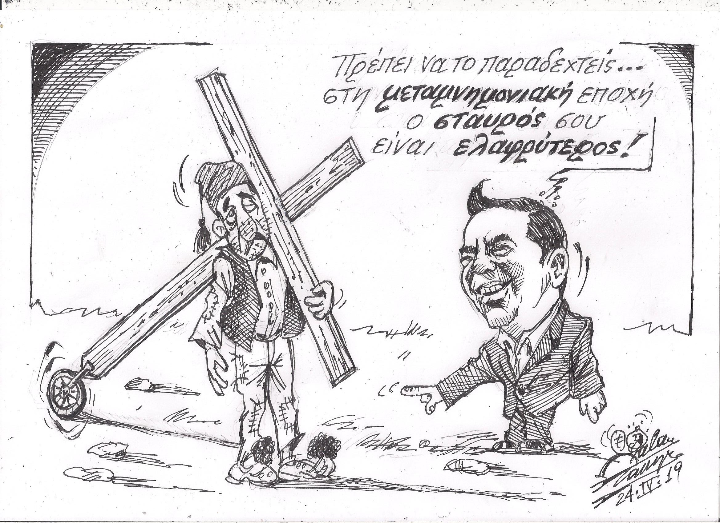 Σκίτσο του Τάκη Χάλαρη με θέμα: "Μεταμνημονιακή Εποχή"