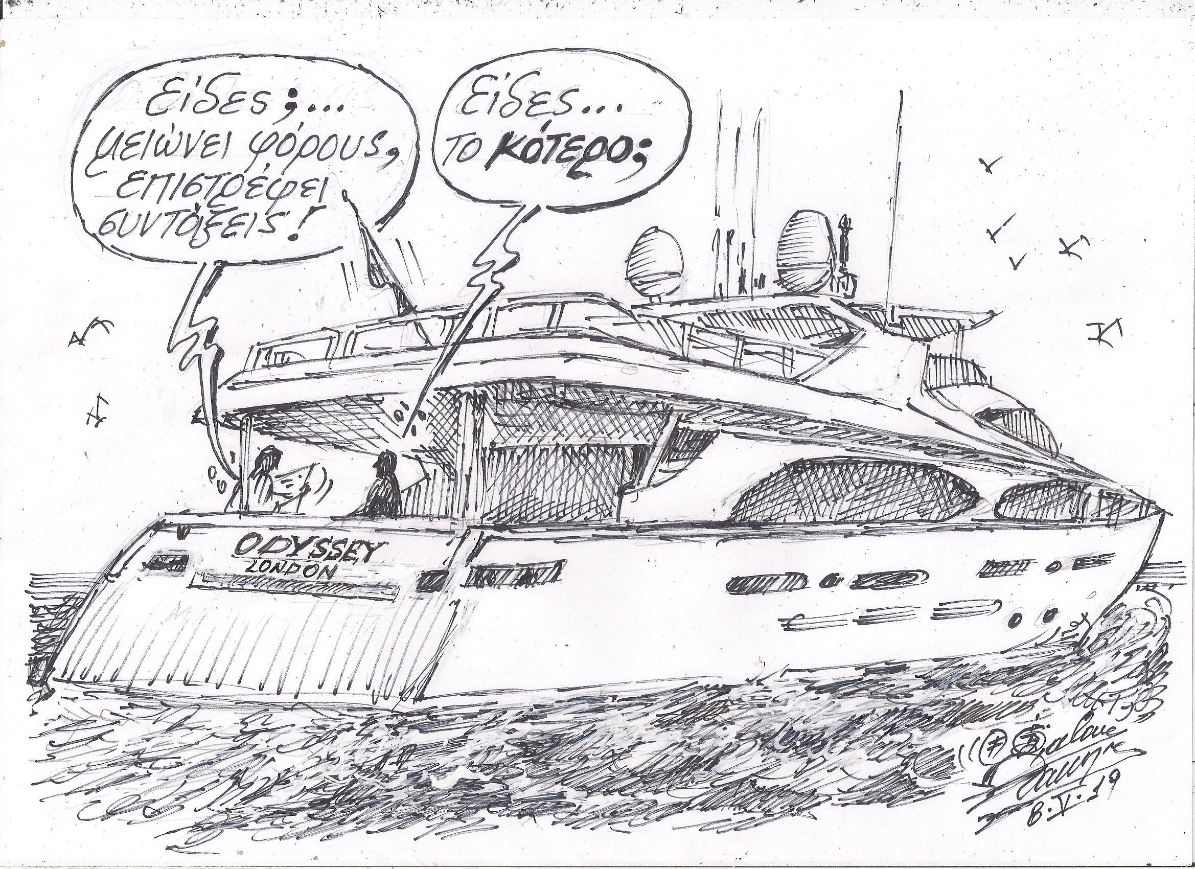 Σκίτσο του Τάκη Χάλαρη με θέμα: "Το κότερο"