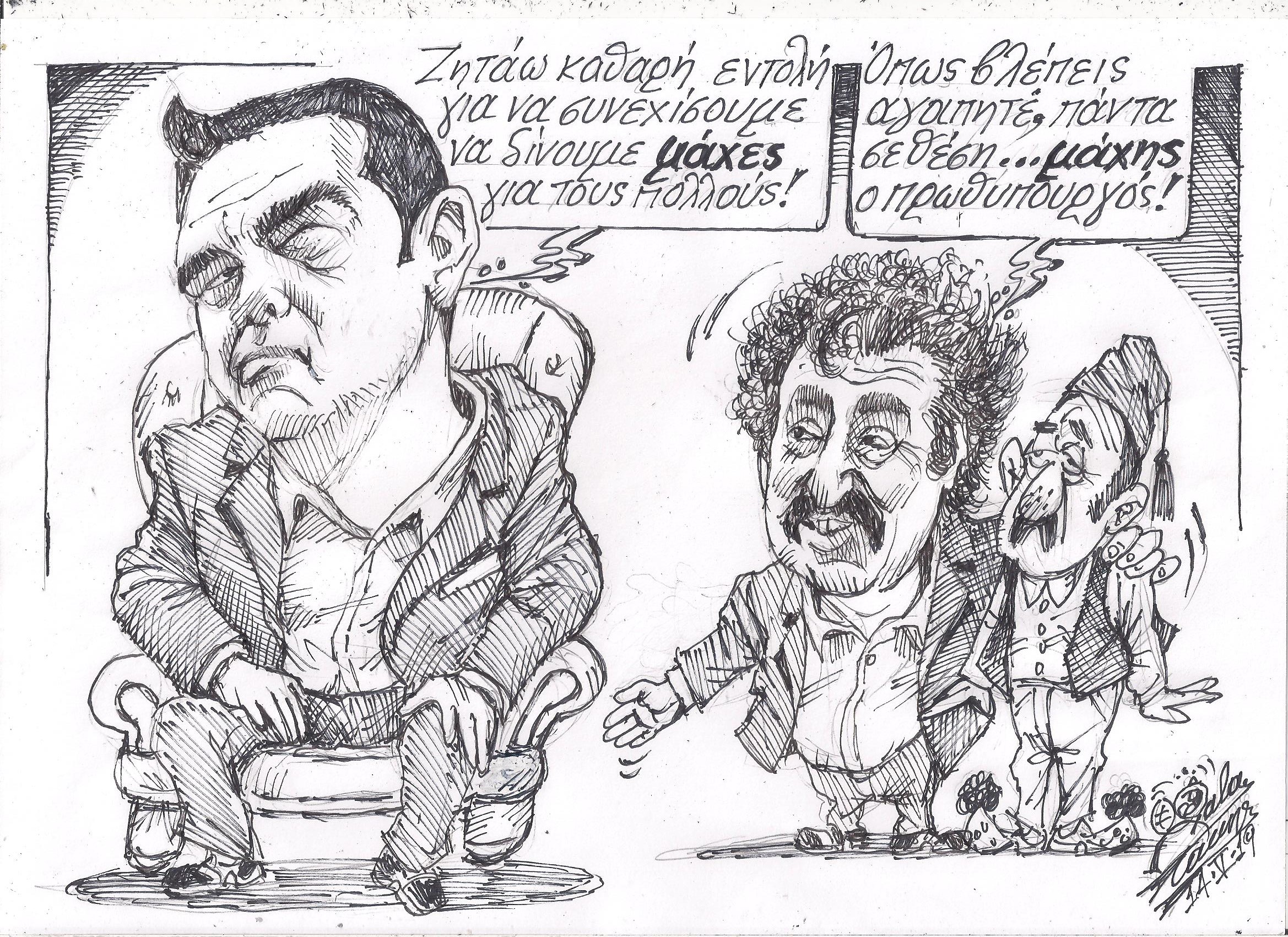 Σκίτσο του Τάκη Χάλαρη με θέμα: "Σε θέση μάχης"