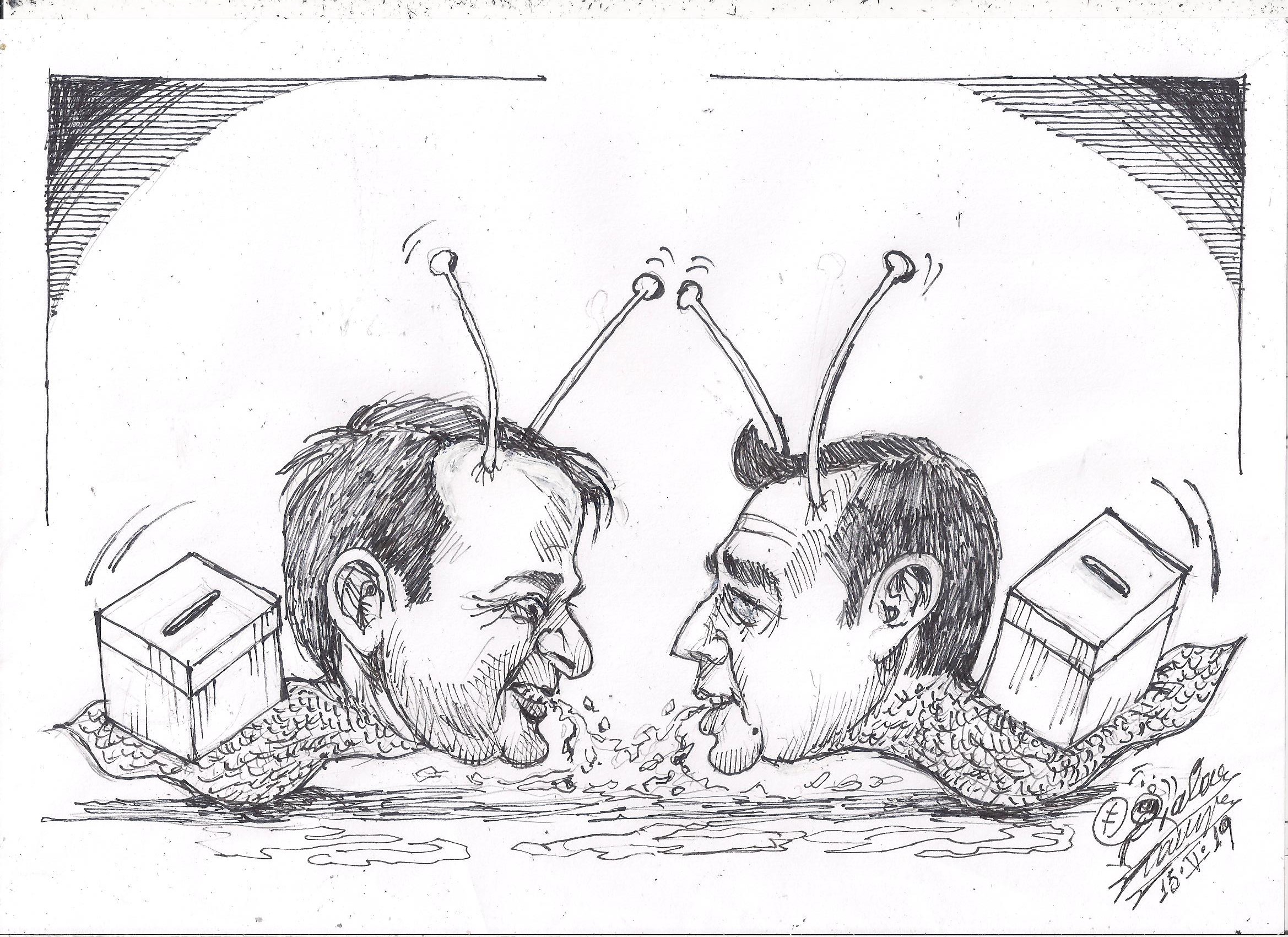 Σκίτσο του Τάκη Χάλαρη με θέμα: "Υποσχέσεις και παροχές"
