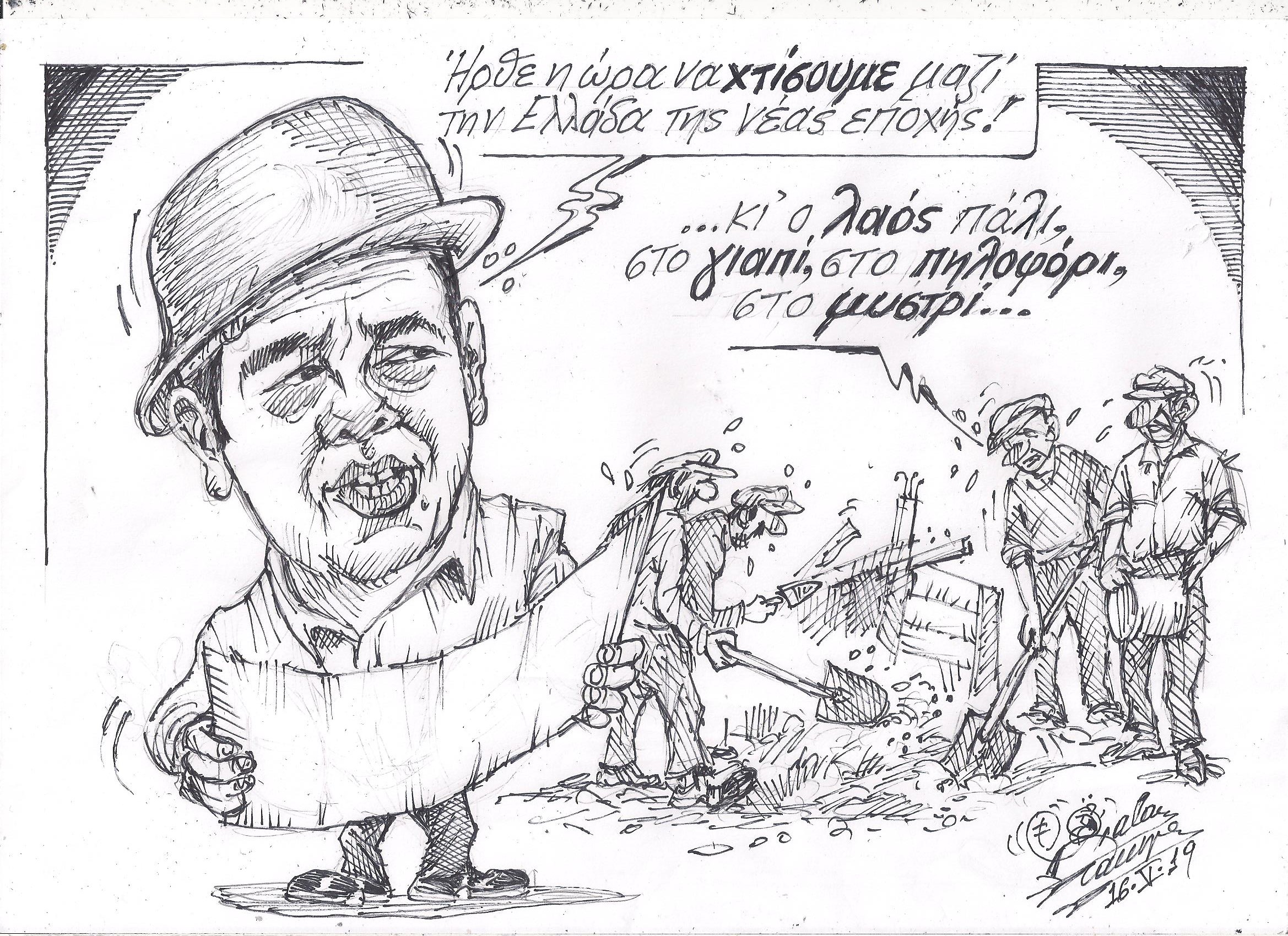 Σκίτσο του Τάκη Χάλαρη με θέμα: "Νέα εποχή"