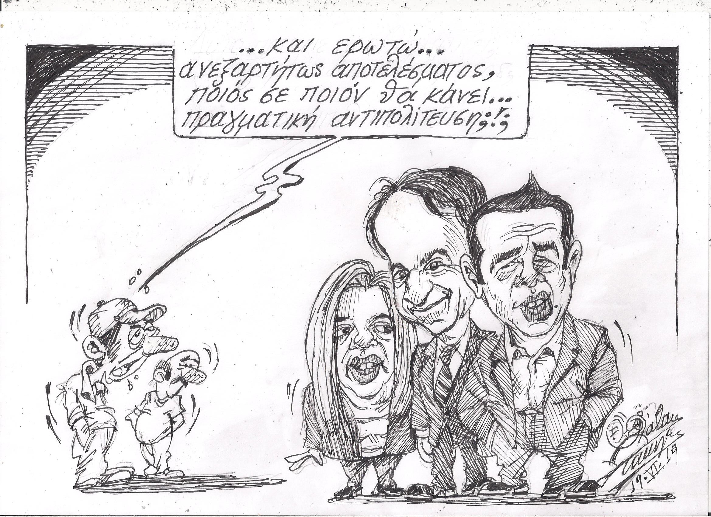Σκίτσο του Τάκη Χάλαρη με θέμα: "Περί πραγματικής αντιπολίτευσης"