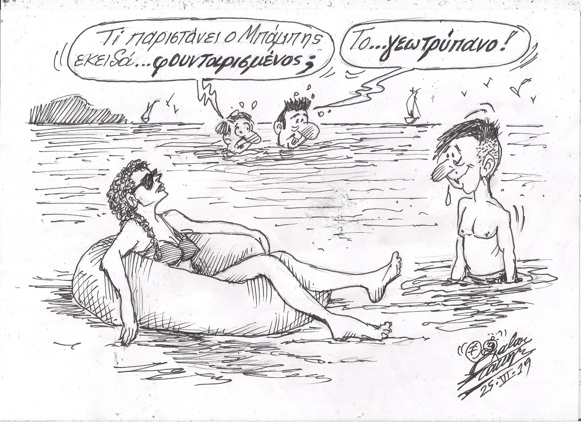 Σκίτσο του Τάκη Χάλαρη με θέμα: "Στην πλαζ"