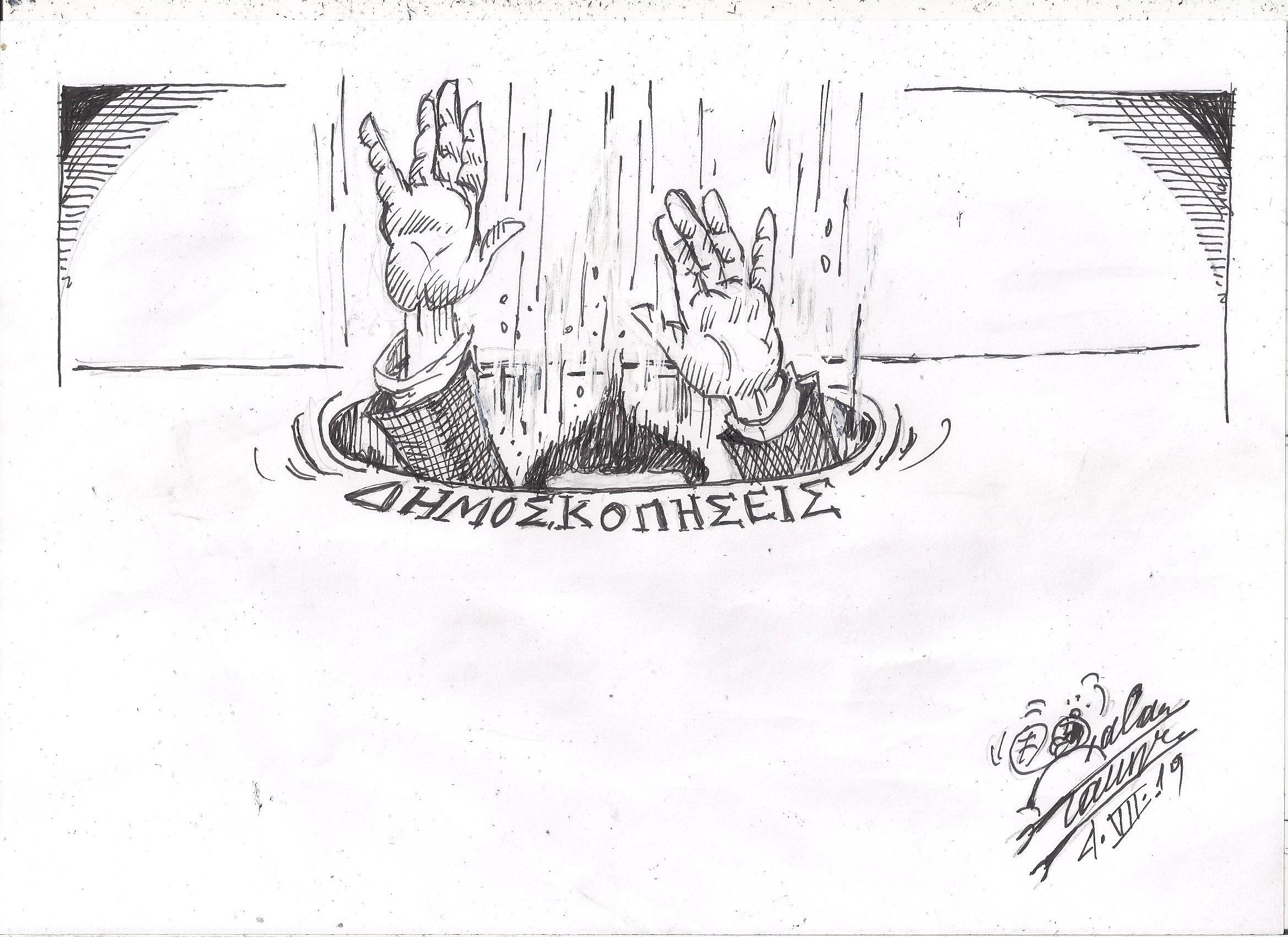 Σκίτσο του Τάκη Χάλαρη με θέμα: "Δημοσκοπήσεις"