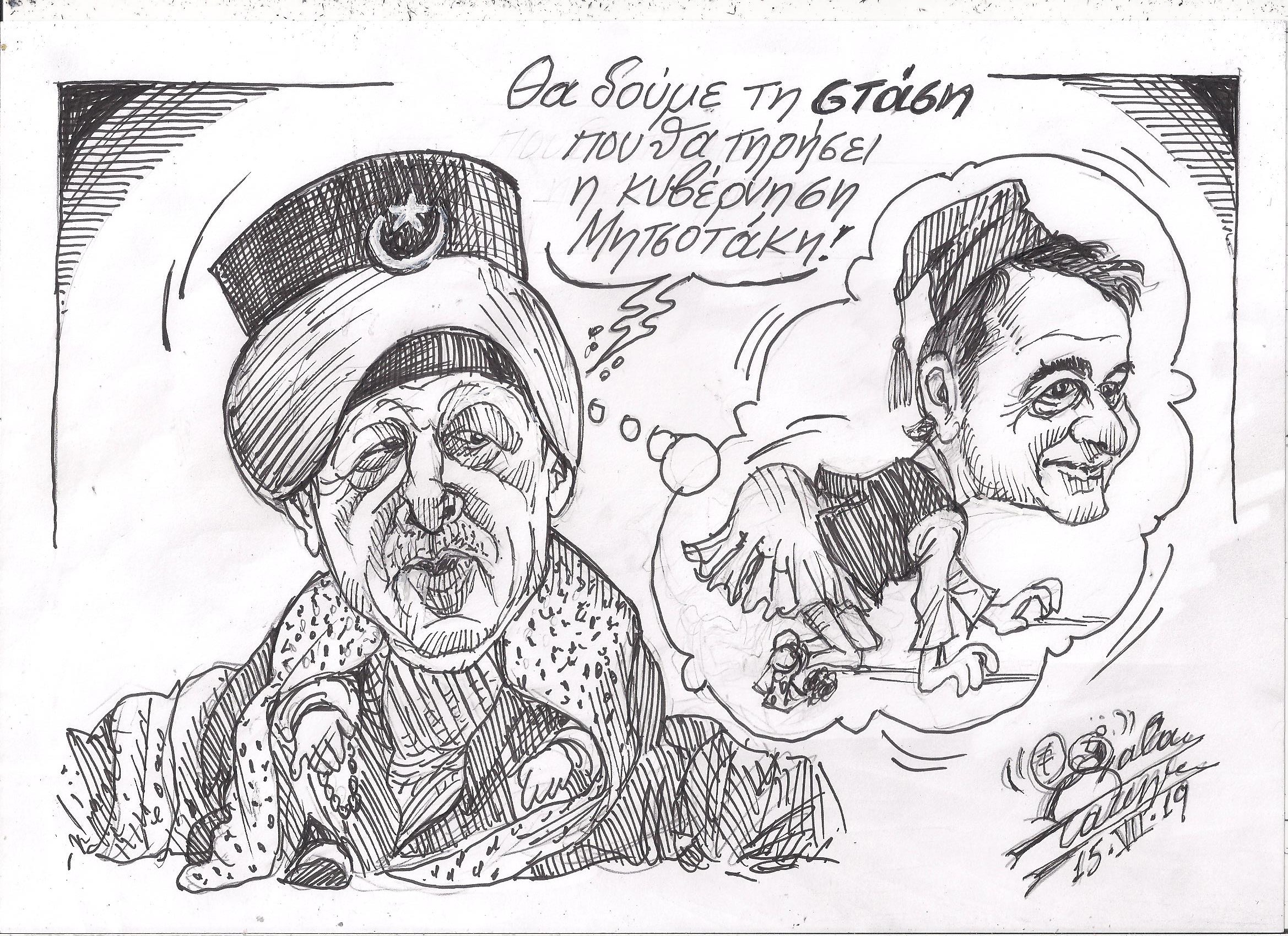 Σκίτσο του Τάκη Χάλαρη με θέμα: "Απειλεί ο Σουλτάνος"