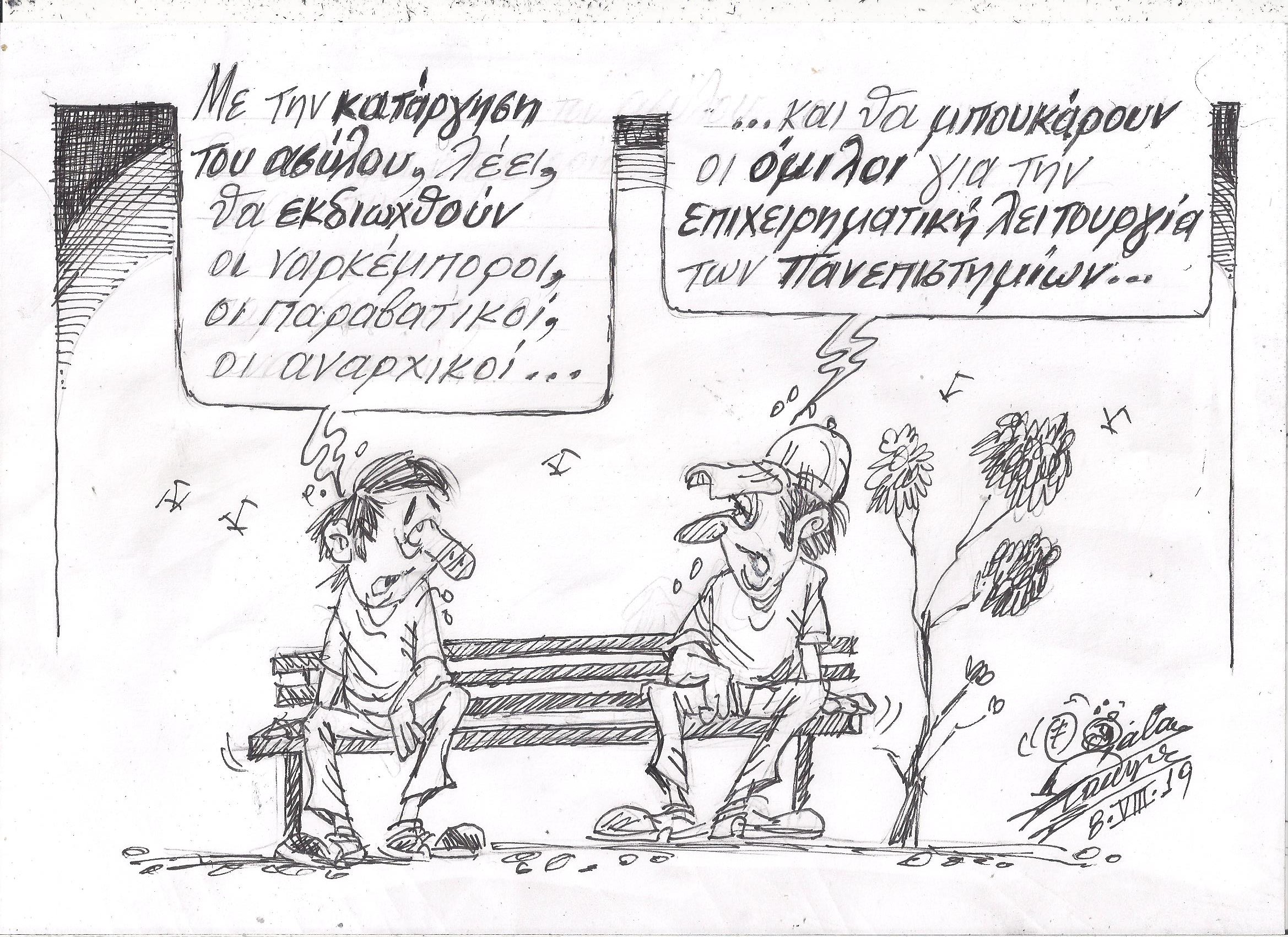 Σκίτσο του Τάκη Χάλαρη με θέμα: "Περί ασύλου"