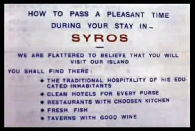 Λοιπόν, ενοχλητικέ και αγενή επισκέπτη, προκλητικέ, συκοφάντη και επικριτή της συριανής νιρβάνας, μετά από τα ασύστολα ψεύδη που ξεστόμισες, σου γνωστοποιείται πως σου αφαιρείται το δικαίωμα να εκφράζεις γνώμη και εξοστρακίζεσαι από το νησί, πάντα υπό τη συνοδεία της “υψηλής” νοοτροπίας της παρακμής: “Άλλος για το νησί; Μεζεδάκι εσείς;”!