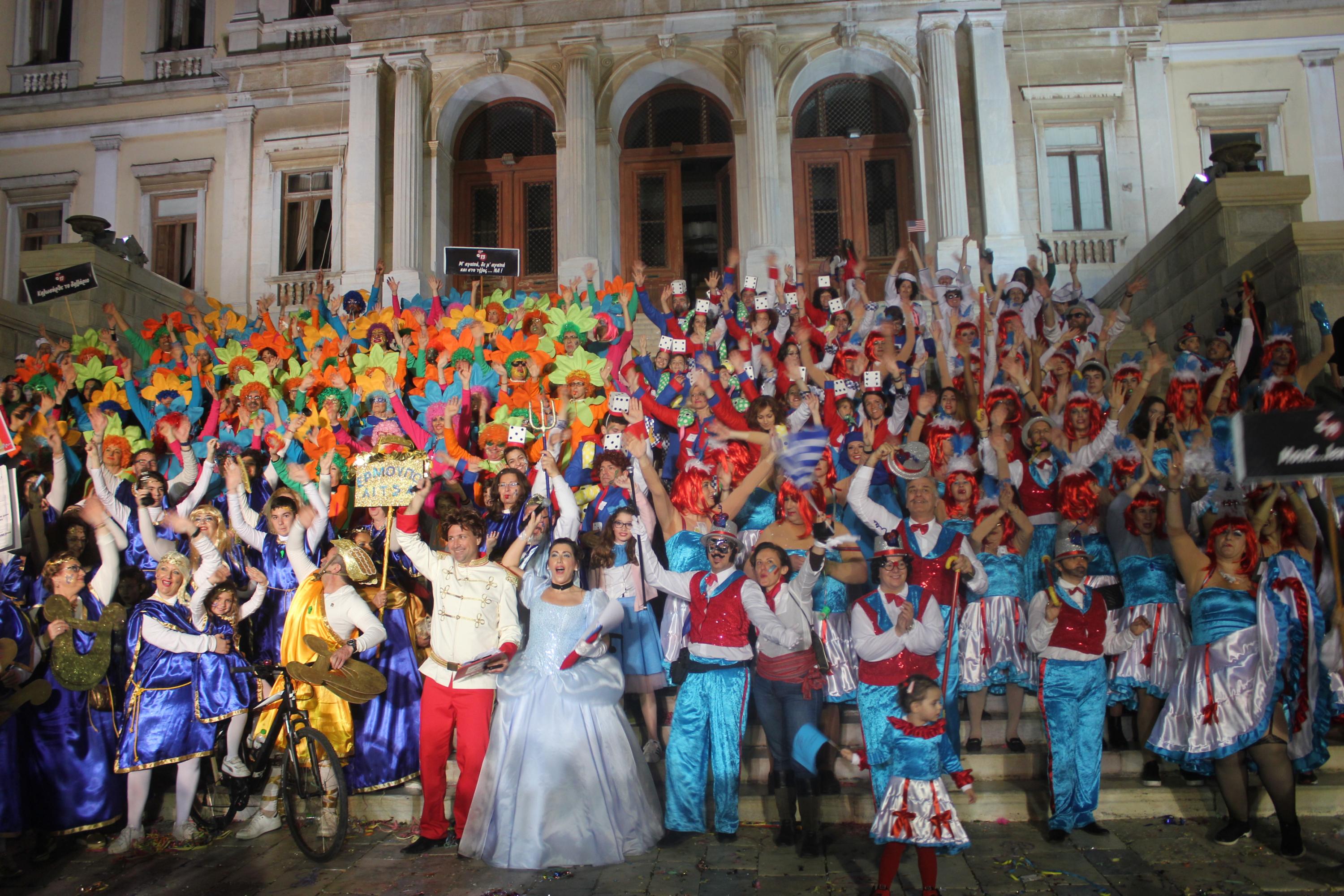 Μιλάω εκ πείρας. Ανέβηκα στην Άνω Σύρο με low battery… στη διάθεση, όχι στη φωτογραφική μηχανή, γιατί αυτή, τη φόρτιζα όλο το απόγευμα. Με είχε κυριεύσει μια μουρτζουφλιά, μια μιζέρια και έλεγα από μέσα μου «άντε, πάλι τα ίδια». Κι όμως, πάνω που ήμουν έτοιμος για απενεργοποίηση, δόθηκε το σήμα για την έναρξη του Καρναβαλιού και οι ομάδες από κοινού με τους παρουσιαστές που φέτος πετούσαν, με φόρτισαν. Η βραδιά κύλησε σαν νερό και αυτό που σου έμεινε στο τέλος ήταν ένα χαμόγελο. Όλοι ήταν χαρούμενοι και ενθουσιασμένοι και ο κόσμος ανυπομονούσε πραγματικά για τη μεγάλη παρέλαση στην Ερμούπολη. Καλός οιωνός, ο οποίος και επαληθεύτηκε.