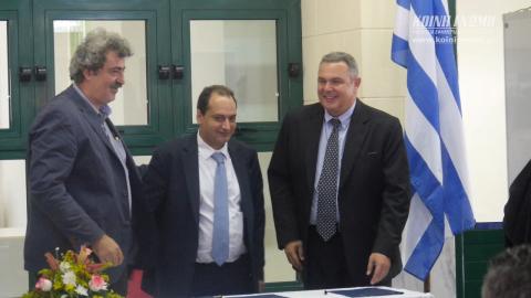 Υπεγράφη το μνημόνιο συνεργασίας ανάμεσα στα Υπουργεία Υγείας, Μεταφορών και Εθνικής Άμυνας για τη λειτουργία της βάσης αεροδιακομιδών του ΕΚΑΒ στη Σύρο, σήμερα το μεσημέρι, στις εγκαταστάσεις του αεροδρομίου Σύρου, όπου μεταφέρθηκε και το υπερσύγχρονο ελικόπτερο για την 24ωρη εξυπηρέτηση των νησιωτών.