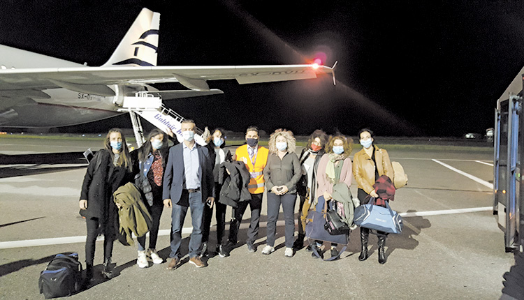Συνοδεύοντας την ομάδα ως το αεροσκάφος, η διοικήτρια και ο υποδιοικητής της 7ης Υ.ΠΕ Κρήτης τους ευχήθηκαν καλό ταξίδι, κουράγιο, υγεία και δύναμη για να αντεπεξέλθουν στο δύσκολο έργο τους, διαβεβαιώνοντας πως, θα βρίσκονται πάντα δίπλα τους, όπως και σε κάθε επαγγελματία υγείας στην Κρήτη που αυτή την ώρα μάχεται κατά της διασποράς του Κοροναϊού Covid-19, στηρίζοντας το δημόσιο σύστημα υγείας, προστατεύοντας την ανθρώπινη ζωή.