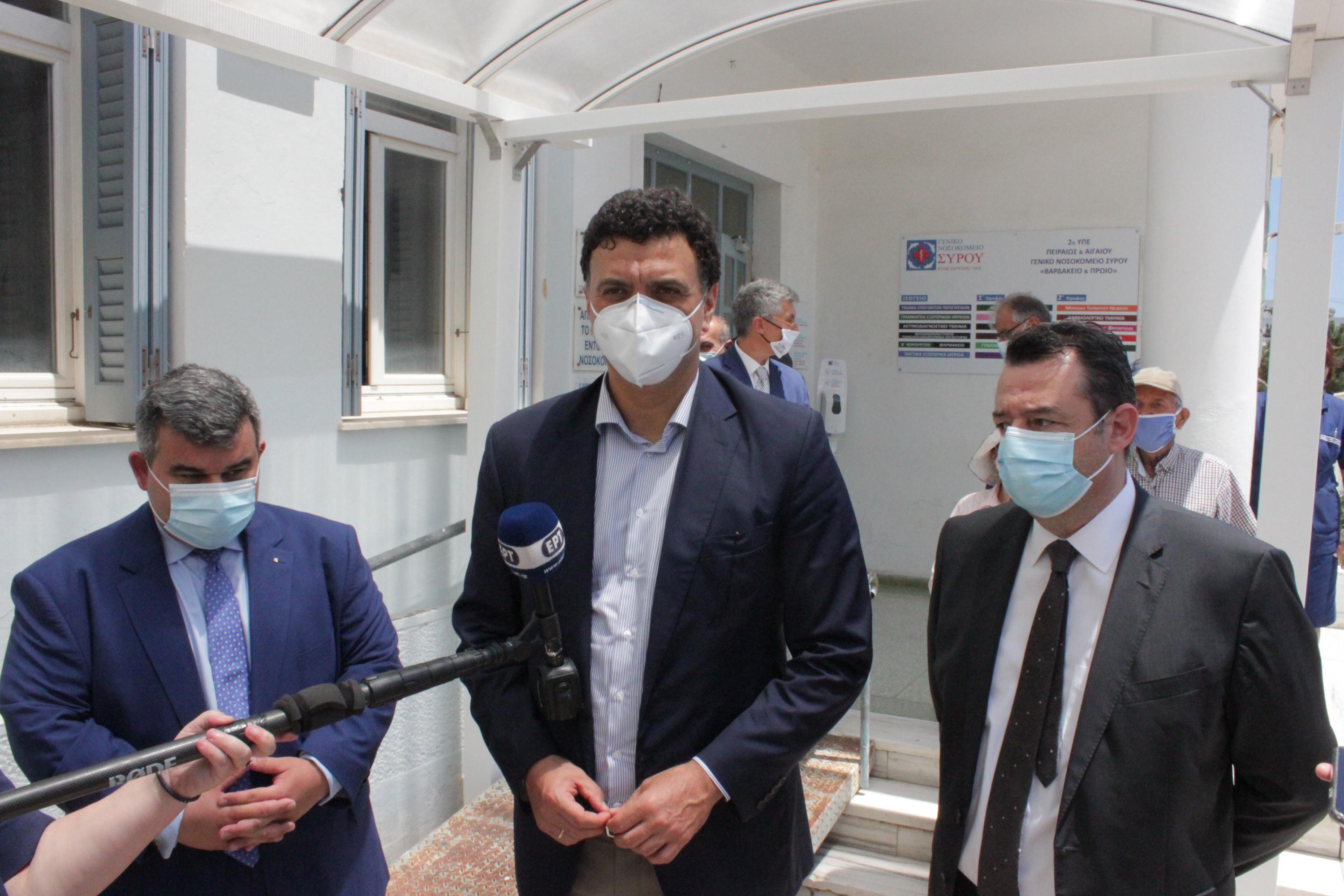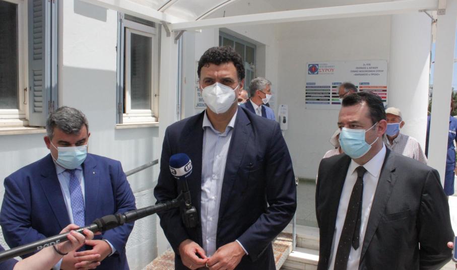 Τις άοκνες προσπάθειες των υγειονομικών του Γενικού Νοσοκομείου Σύρου και του Κέντρου Υγείας της πρωτεύουσας των Κυκλάδων αναφορικά με την πρόοδο του εμβολιασμού κατά της Covid-19 εξήρε ο Υπουργός Υγείας, Βασίλης Κικίλιας, ο οποίος επισκέφθηκε το νησί το τελευταίο τριήμερο.