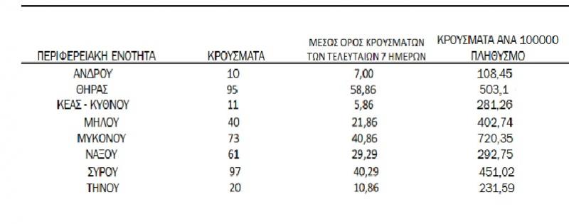 Συνεχής αύξηση των κρουσμάτων COVID-19, με τα νησιά των Κυκλάδων να καταγράφουν 407 νέες λοιμώξεις κορωνοϊού.