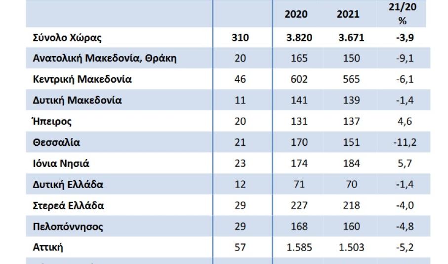Αντίθετα μειώσεις παρατηρήθηκαν στις Περιφέρειες Βόρειου Αιγαίου, Νότιου Αιγαίου και Ηπείρου κατά 7,3% 6,8% και 0,3% αντίστοιχα.