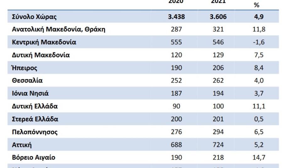 • Στα ιατρικά μηχανήματα που διαθέτουν τα Κέντρα Υγείας, παρατηρήθηκε αύξηση στο σύνολο της χώρας το 2021 σε σχέση με το 2020 κατά 4,9%.