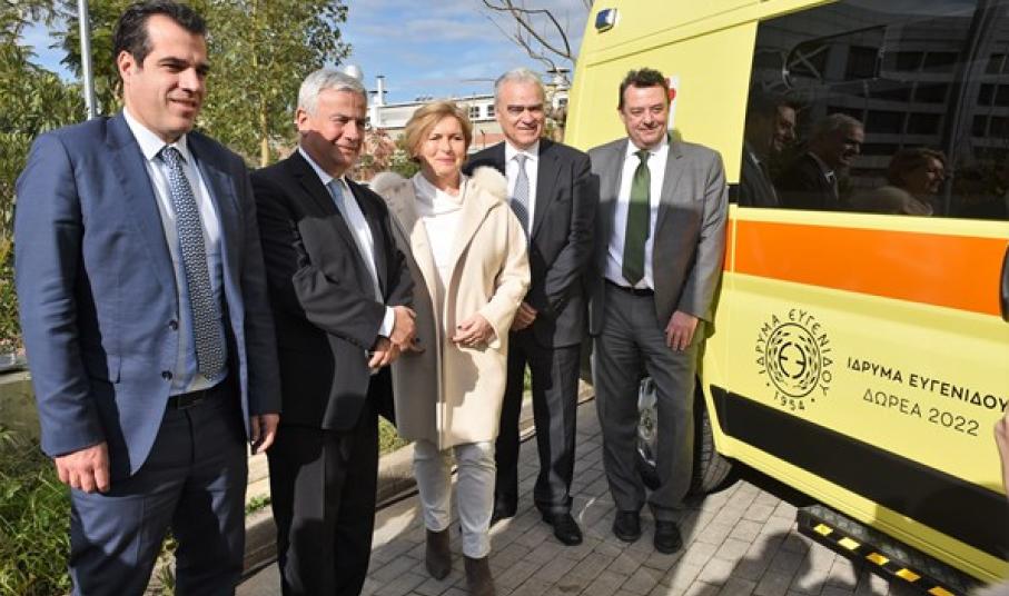 Από την πλευρά της η αναπληρώτρια υπουργός Υγείας, Μίνα Γκάγκα τόνισε ότι «το ίδρυμα Ευγενίδου προσέφερε και προσφέρει υπηρεσίες υγείας, χωρίς καν να του το ζητήσουν. Η Ελλάδα έχει αυτό το μεγάλο δώρο του Θεού, τα νησιά και το θέμα είναι πώς φροντίζουμε να έχουμε καλές υπηρεσίες υγείας και υγειονομικό προσωπικό. Θεωρούμε κεφαλαιώδη θέματα την ασφαλή αντιμετώπιση τόσο των χρονίων όσο και των Επειγόντων περιστατικών καθώς και τις ασφαλείς διακομιδές σε κάθε μέρος, για να έχει ο κάθε πολίτης τις υπηρεσίες υγείας που χρειάζεται. Ευχαριστούμε πολύ τον Λεωνίδα Ευγενίδη για τη δωρεά».