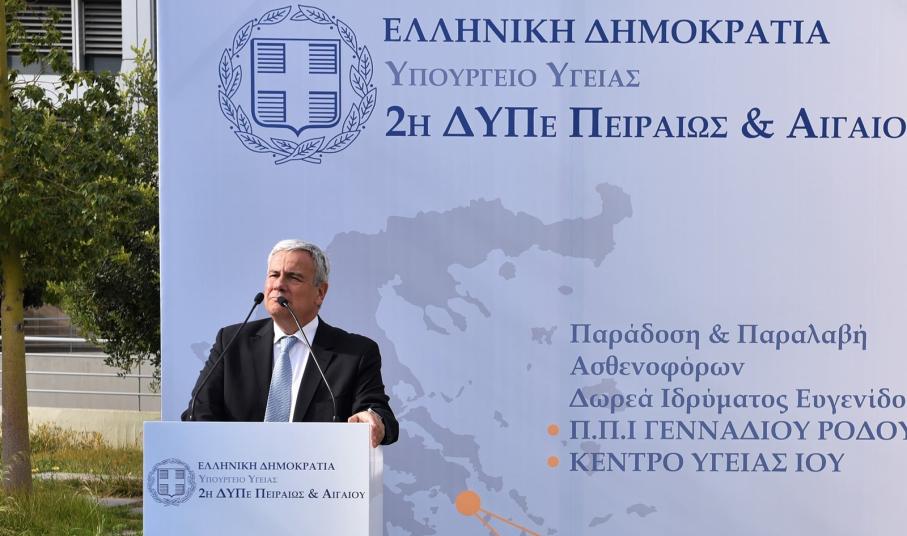 Ξεχωριστή αναφορά έκανε στο Ίδρυμα Ευγενίδου, “Θέλω να ευχαριστήσω τον κ. Ευγενίδη γιατί τα χρήματα που δίνονται από δωρεές είναι χρήματά που γυρίζουν πίσω στην κοινωνία. Είναι δωρεές που έχουμε πλήρη εξάρτηση με την διακομιδή του ασθενούς. Επεξεργαζόμαστε ένα ευρύτερο πλαίσιο για να έχουμε ένα άρτιο σύστημα αεροδιακομιδών από τα νησιά μας με περισσότερα ελικόπτερα και σταθμούς που θα το παρουσιάσουμε άμεσα”.