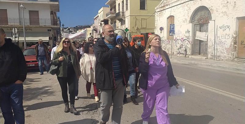 Νέα δυναμική κινητοποίηση πραγματοποιήθηκε, από τους εργαζόμενους του Γενικού Νοσοκομείου Σύρου, το πρωί της Παρασκευής 7 Απριλίου, στην Ερμούπολη. Την κινητοποίηση στήριξαν με την παρουσία τους αρκετοί Σύλλογοι, αλλά και απλοί πολίτες που ένωσαν τις φωνές τους με αυτές των εργαζομένων, για να ακουστούν πιο δυνατά τα αιτήματά τους.